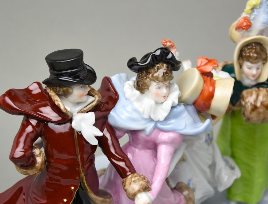 Four 19th century ice skaters figurine, freshly manufactured, October 2025. Absolutely beautiful piece of super quality German china.