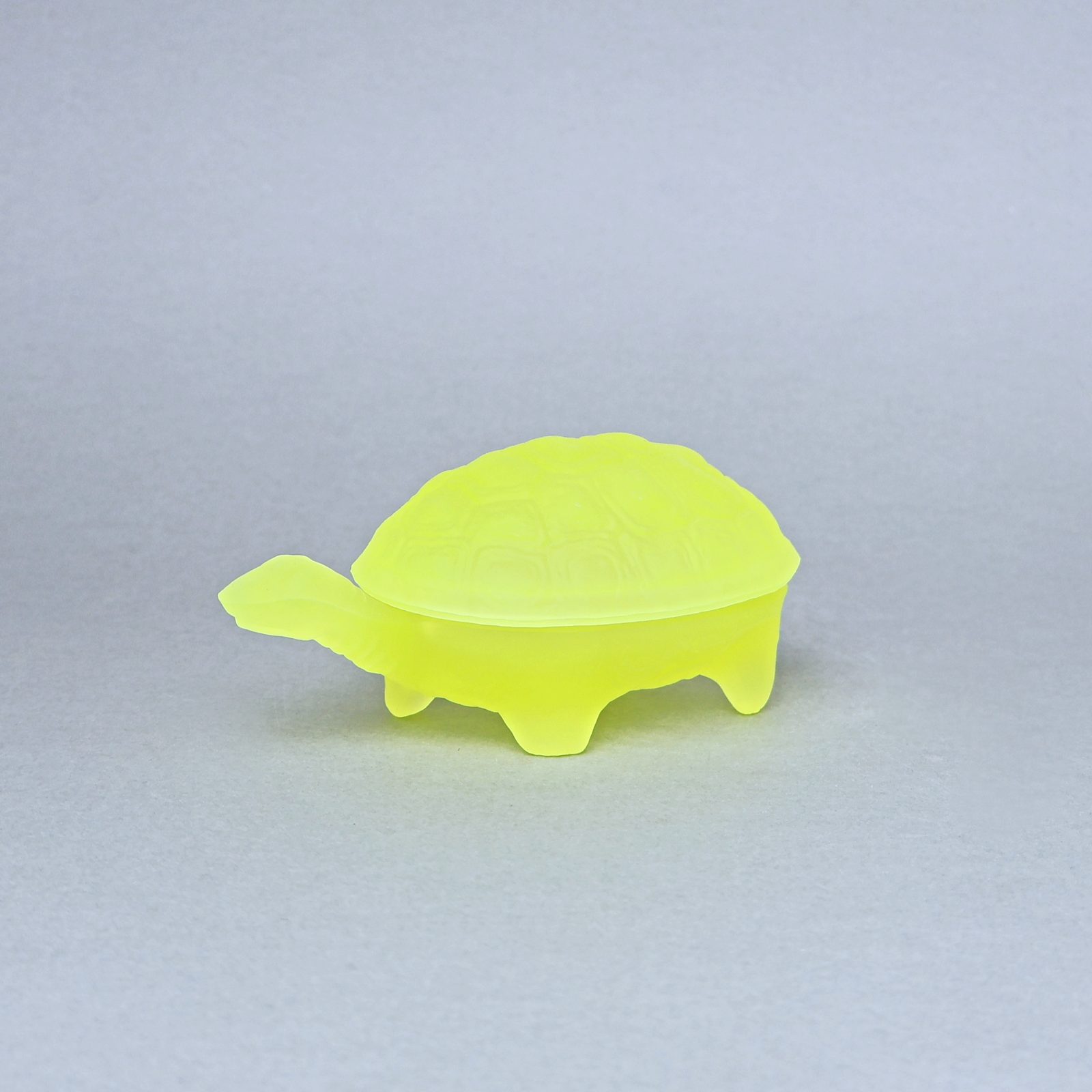 Decorative Glass Box in the Shape of a Turtle, Made of Genuine Uranium Glass, Handcrafted at the Janov Glassworks