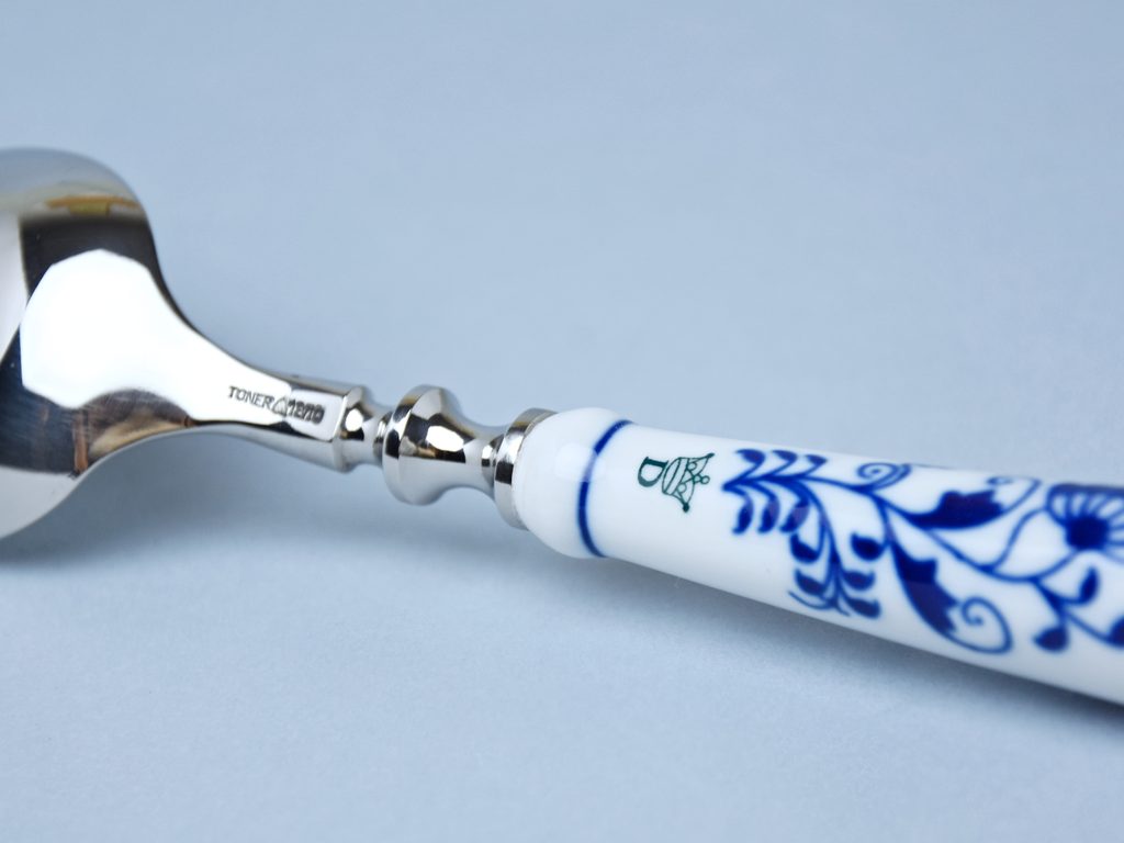 Beautiful luxury coffee spoon 16,5 cm from the Czech manufacturer of high quality cutlery made of premium stainless steel TONER. Porcelain handle with Original Blue Onion Pattern in decor - traditionally produced in Dubí - Český porcelán a.s.