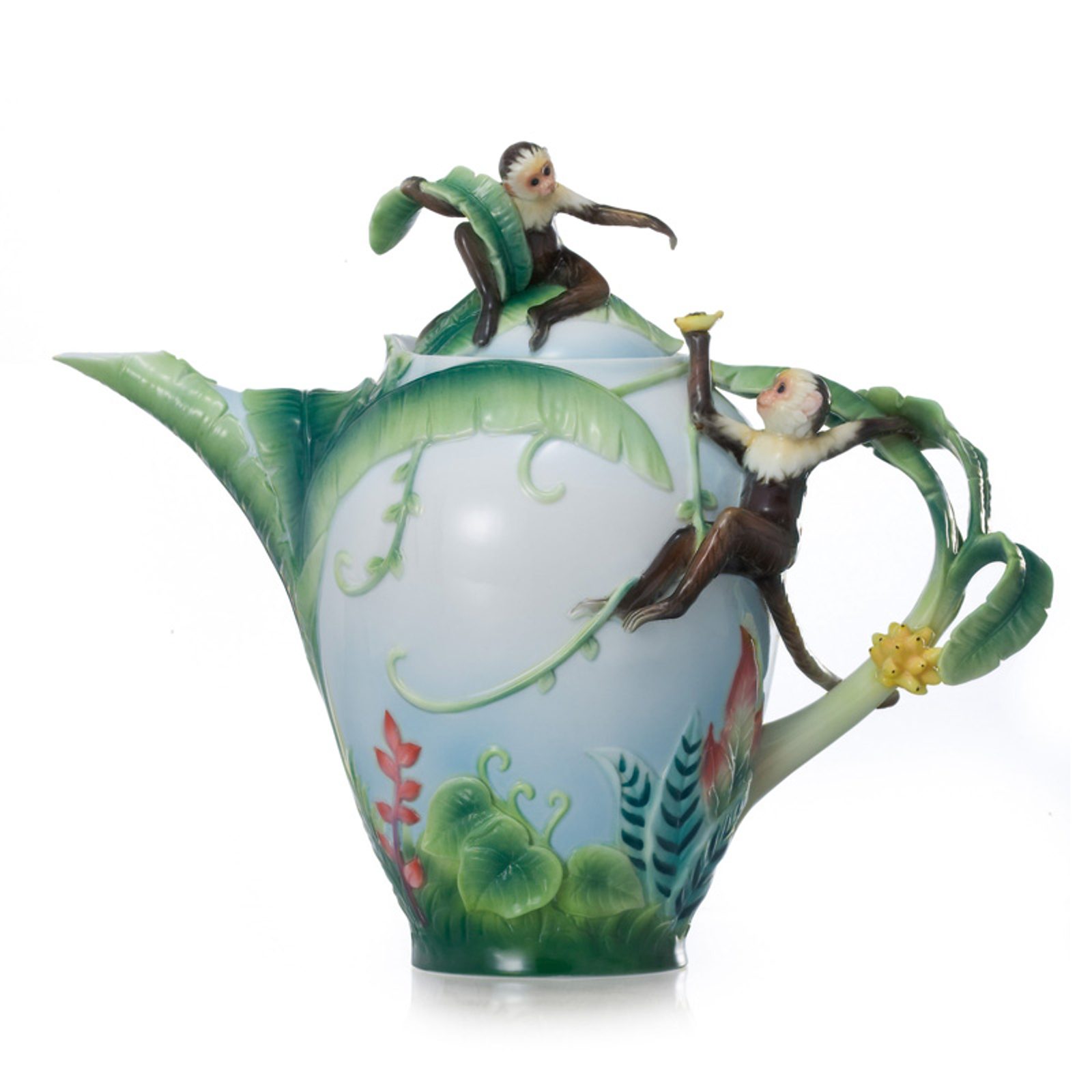 Monkey mischief design sculptured porcelain teapot 23 cm, FRANZ Porcelain