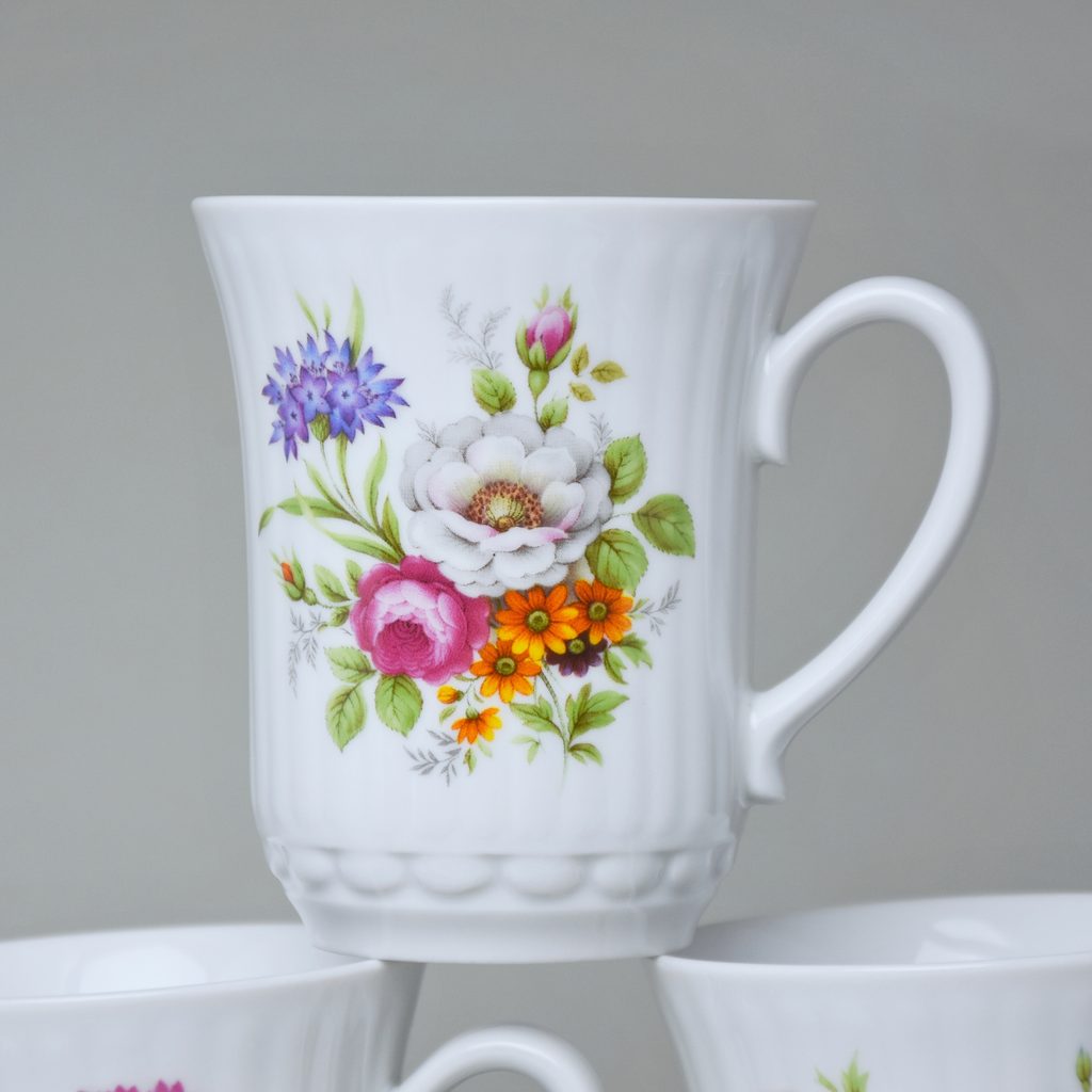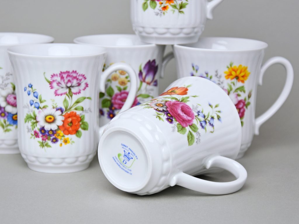 Mug Derby 0,25 l, set of 6 pcs., 6x different colorful flowers in decor, Český porcelán a.s.