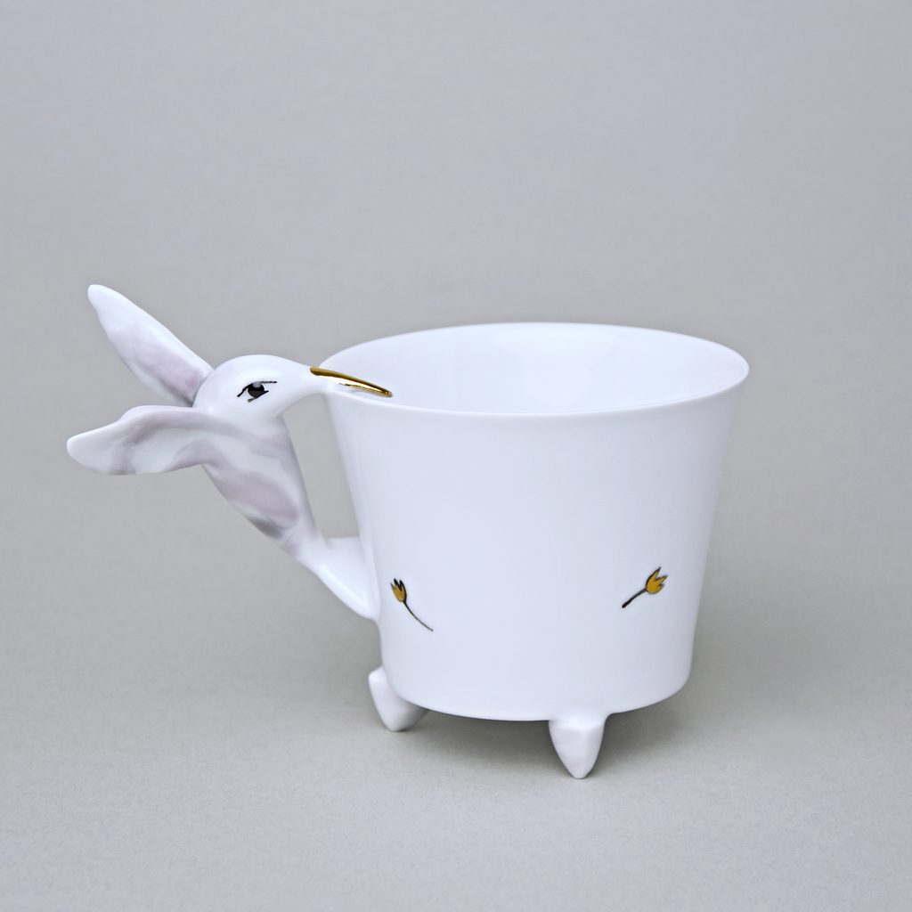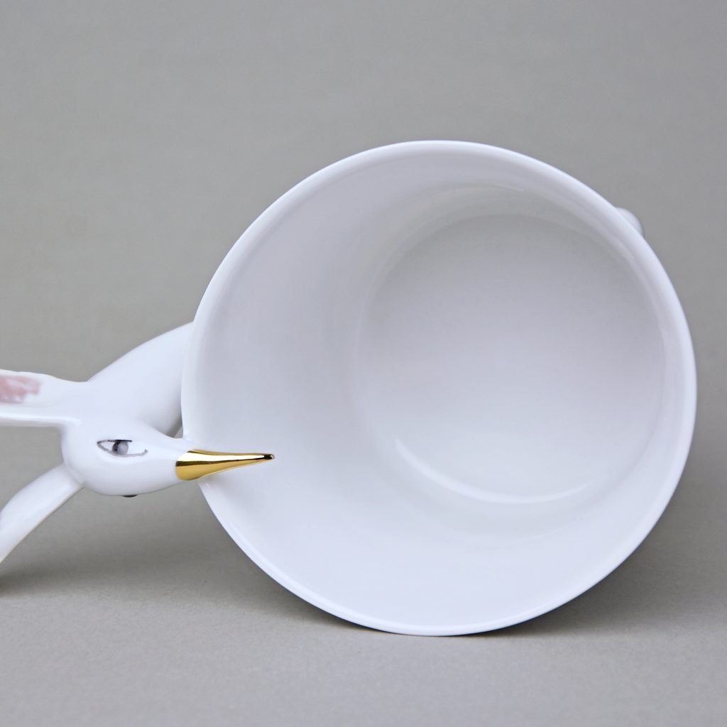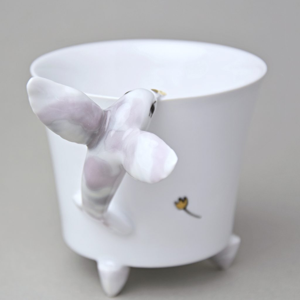 Beautiful mug with an original hummingbird grip! Not just for display, but for coffee, tea or cocoa. An ideal gift for all hummingbird lovers. The bird is decorated with pink color - every piece is an original by the decoration. Goldfinger porcelain.