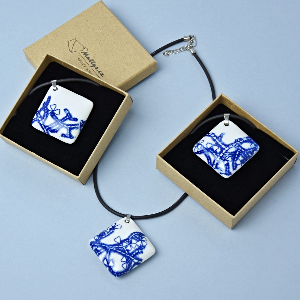 The porcelain necklace in a shape of square pillow with a flowering Cactus in decor. This beautiful handmade jewelry comes from the area of pure nature of the Krkonoše Mountains, where the Mallys studio is located. It will tastefully complement any of your outfits and make it original.