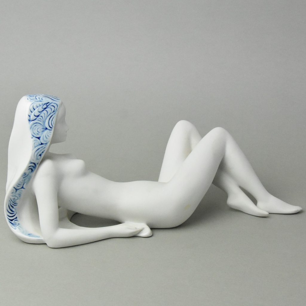 Nude Cecílie, porcelain figure matt with inglazed hair part, made in Duchcov Royal Dux porcelain manufactory