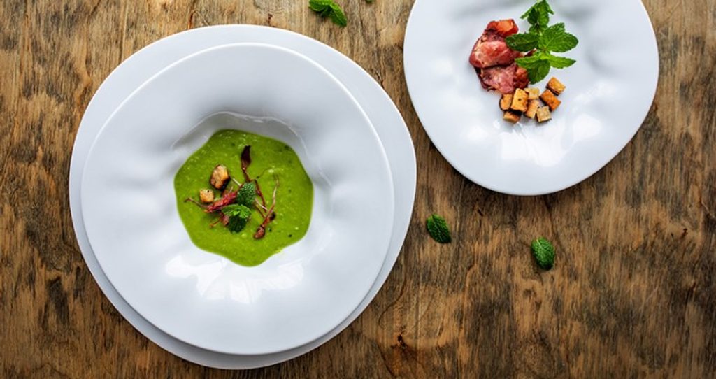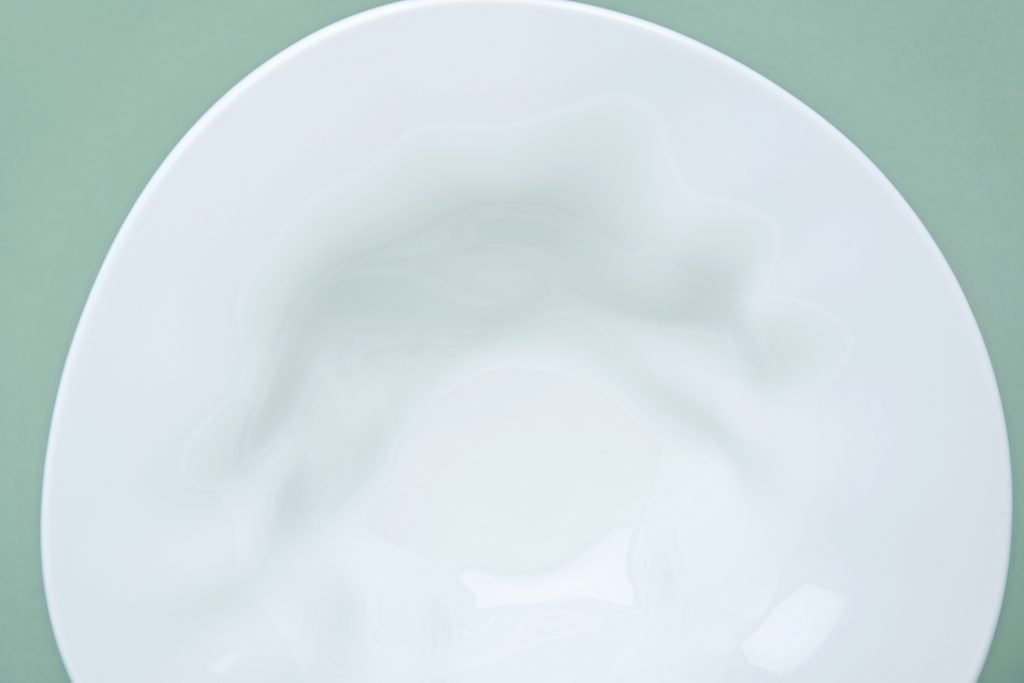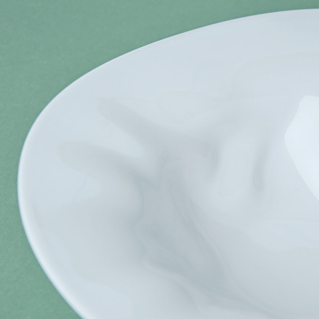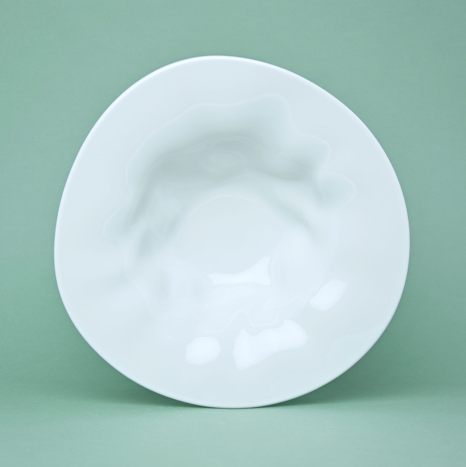 Beautiful design porcelain pasta / soup plate. Atypical "crumpled" shape from the FLAMENCO collection. No decor - pure white. Made in the Czech Republic by the G. Benedikt 1882 porcelain manufactory, under one of their original brands - Lilien Austria.