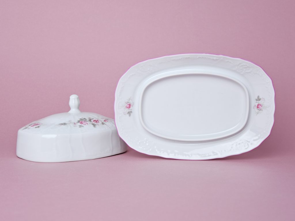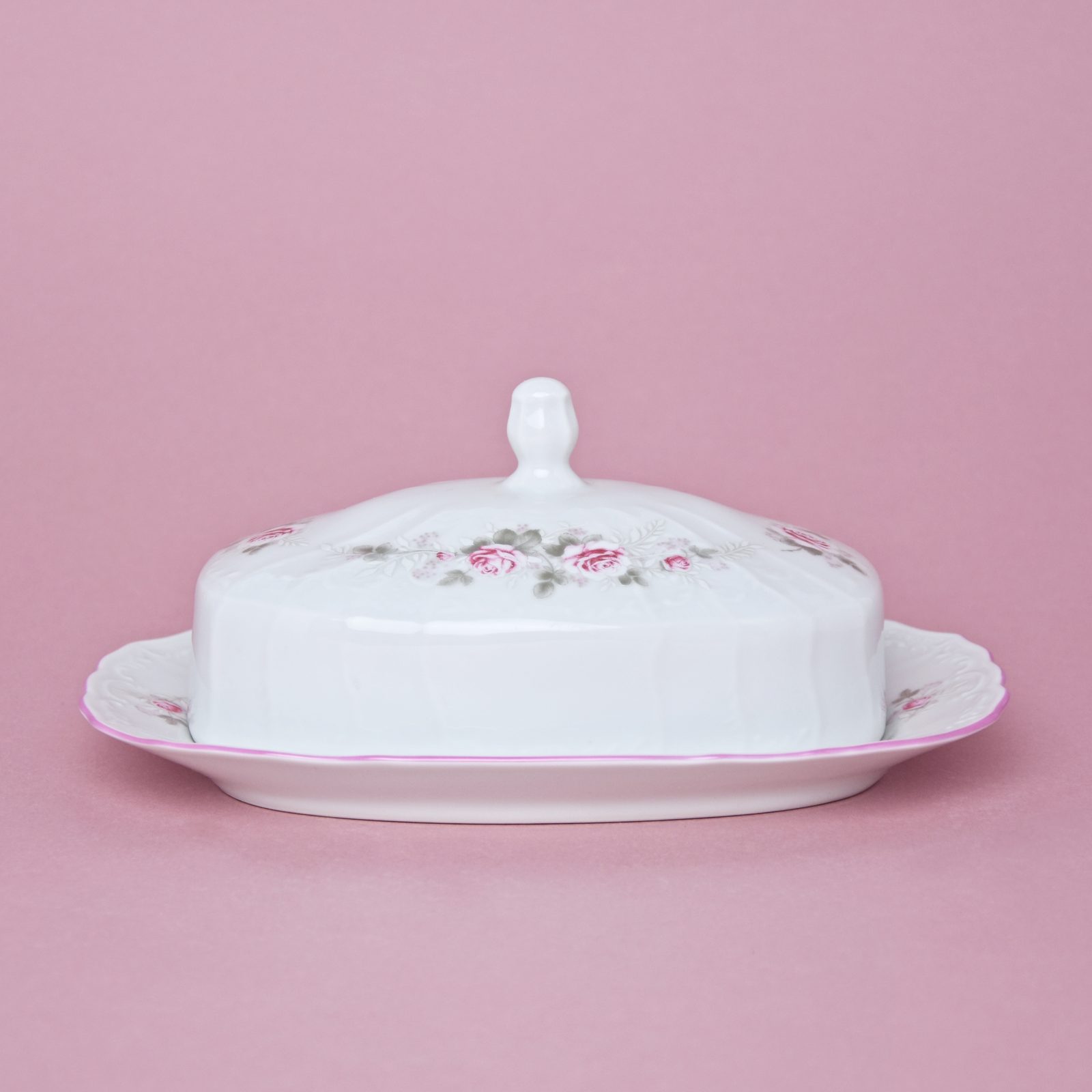Pink line: Butter dish 250 g, Thun 1794 Carlsbad porcelain, BERNADOTTE roses