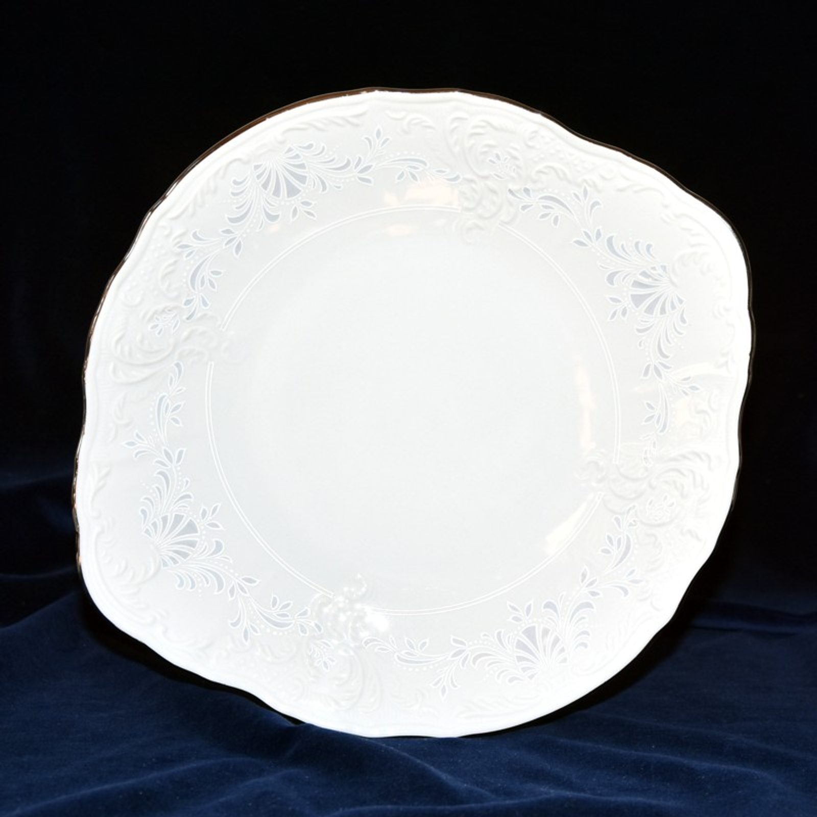 Plate cake 27 cm with handles, Thun 1794 Carlsbad porcelain, BERNADOTTE frost, Platinum line