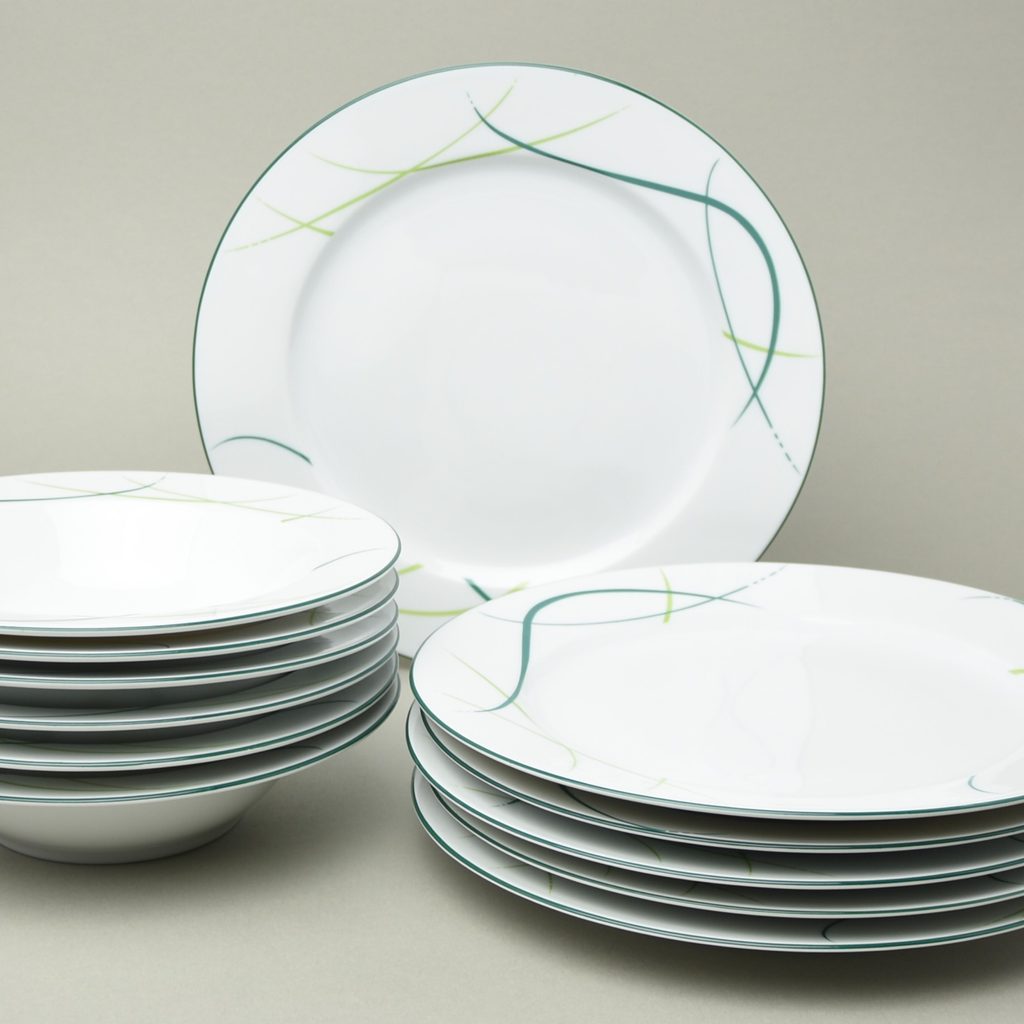 Plate set 12 pcs., Thun 1794, karlovarský porcelán, OPÁL grass