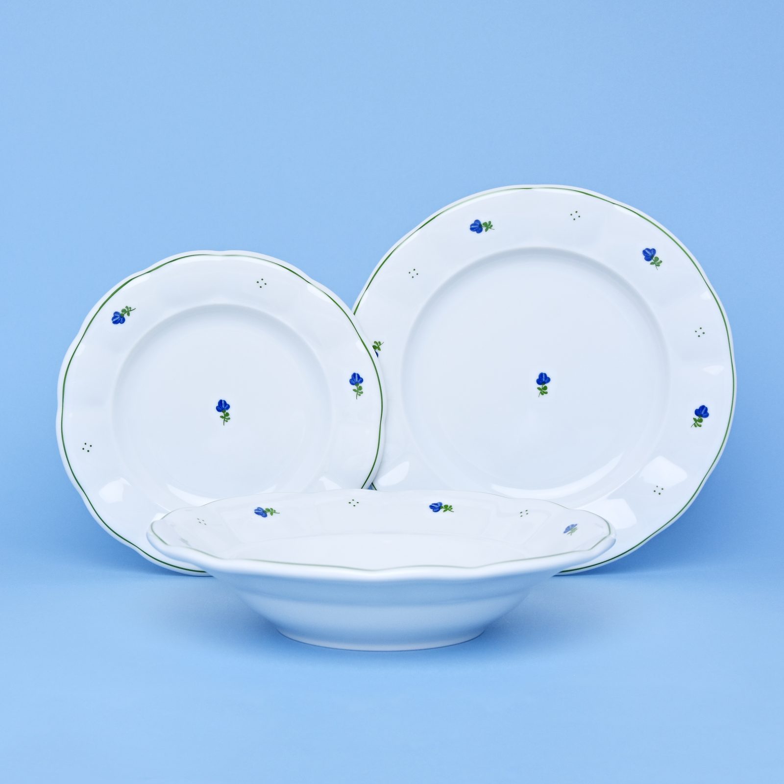 Plate set for 6 pers., 24,24,19, Benedikt blue flowers, G. Benedikt 1882 6 plates dining 24 cm, 6 plates deep 24 cm, 6 plates dessert 19 cm
