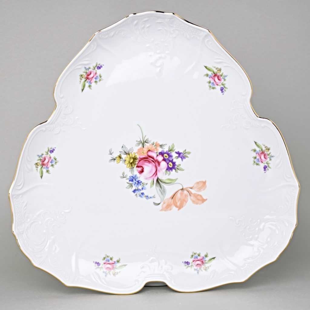 Platter 33 cm triangular (flat dish), Thun 1794 Carlsbad Porcelain, BERNADOTTE Meissen Rose