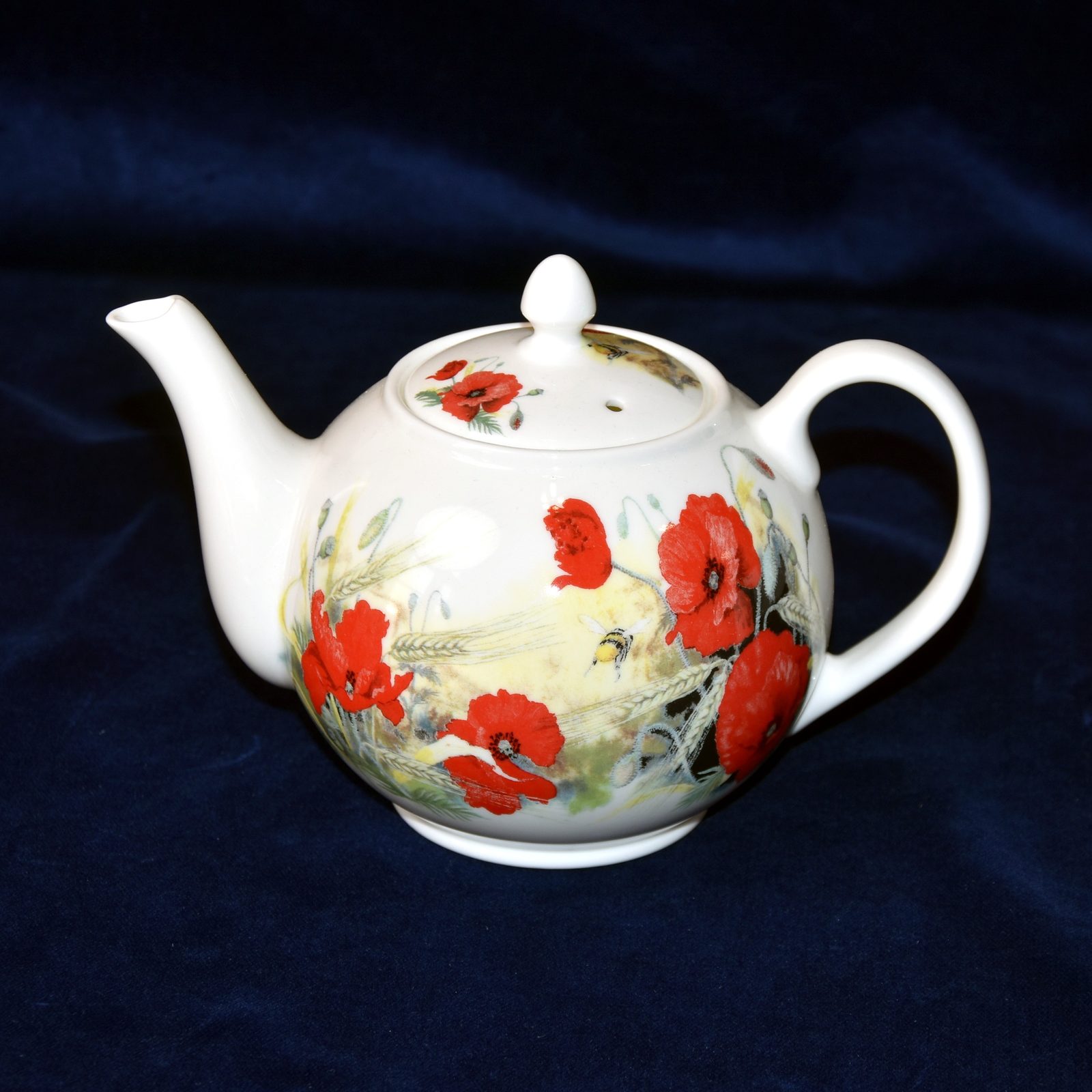 Pěkná lehká konvice na čaj s dekorem vlčího máku. Kolekce "Poppy" od Roy Kirkham - anglický kostní porcelán.