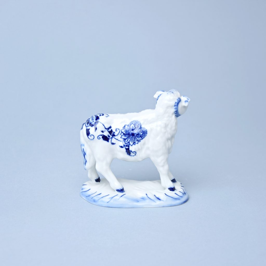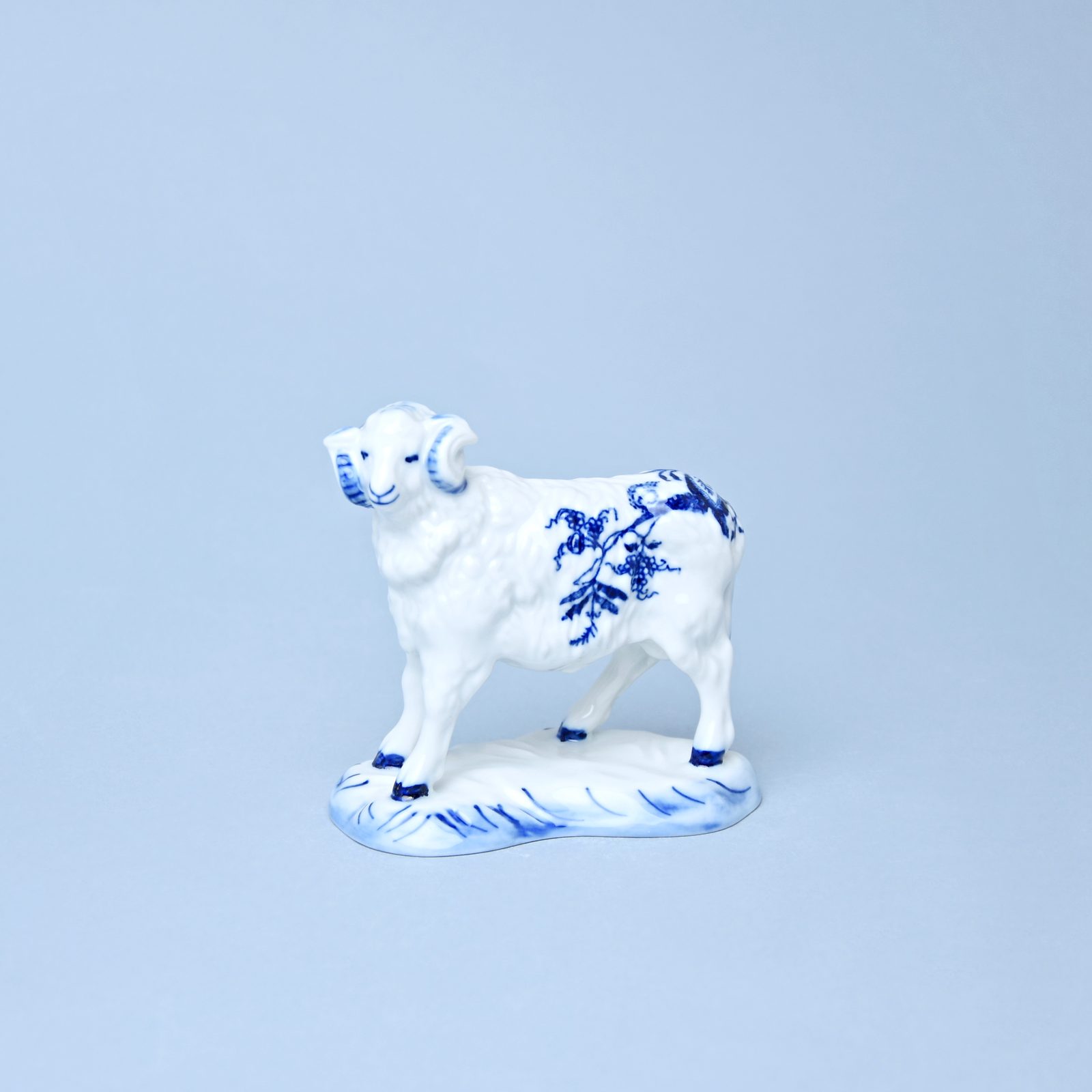 Porcelain figure of a Ram, Original Blue Onion Pattern from Dubí, Český porcelán a.s.