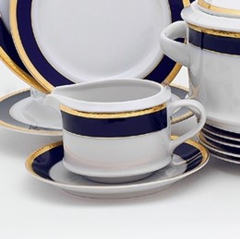 Sabina 767: Sauce boat 400 ml + underplate, cobalt blue + gold, Leander 1907