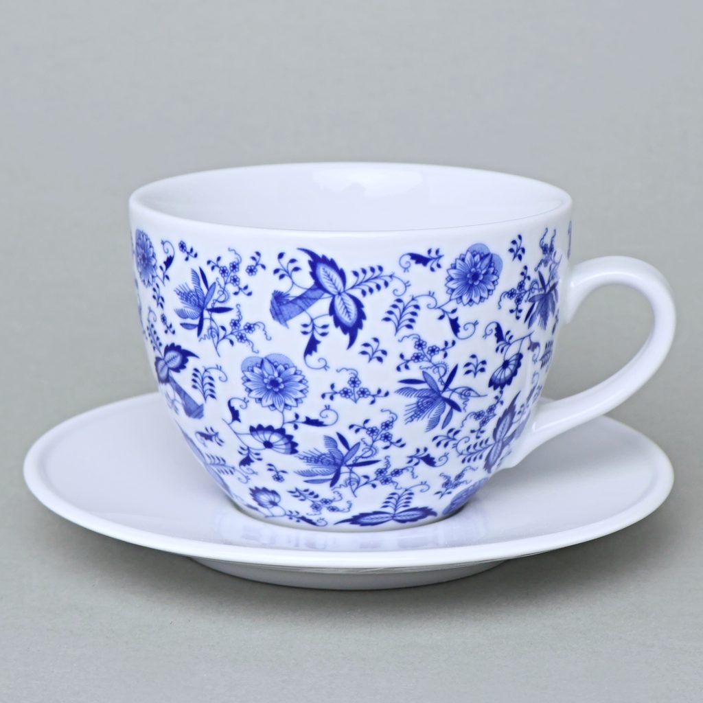 Šálek 480 ml široký a podšálek 17 cm Milada, Fragmenty cibuláku, zelená, Český porcelán a.s.
