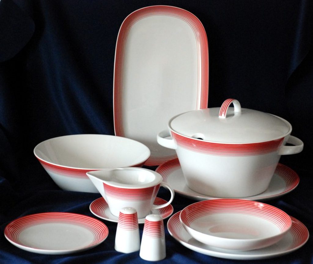 Salt and pepper shakers, Thun 1794, karlovarský porcelán, TOM 29954a0 red stripes