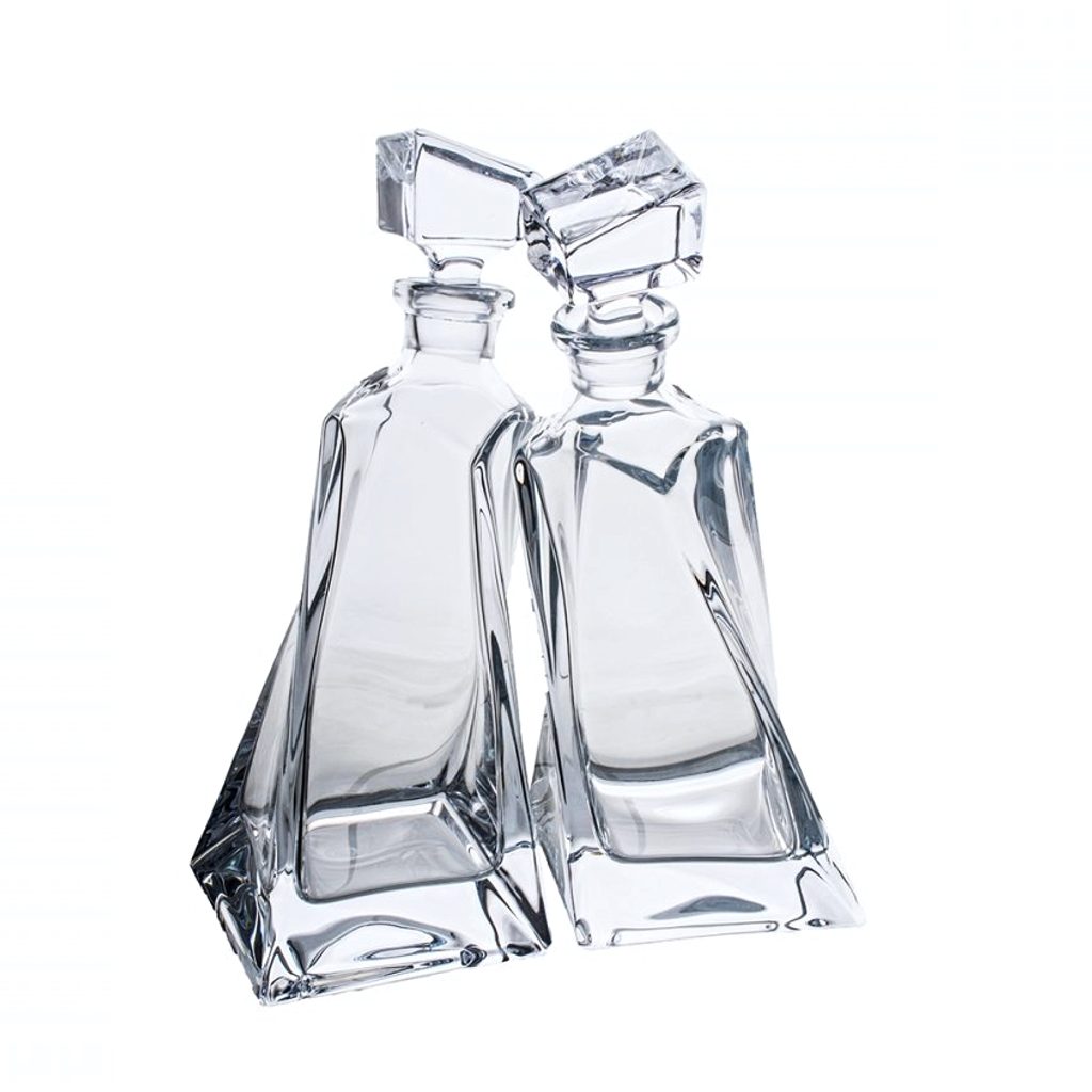 Beautiful design crystal whisky set of two carafes Crystal Bohemia. For it's atypical elegant design is suitable also as a decoration to your home. 24% PbO crystal. A beautiful gift. Packed in a gift box.
