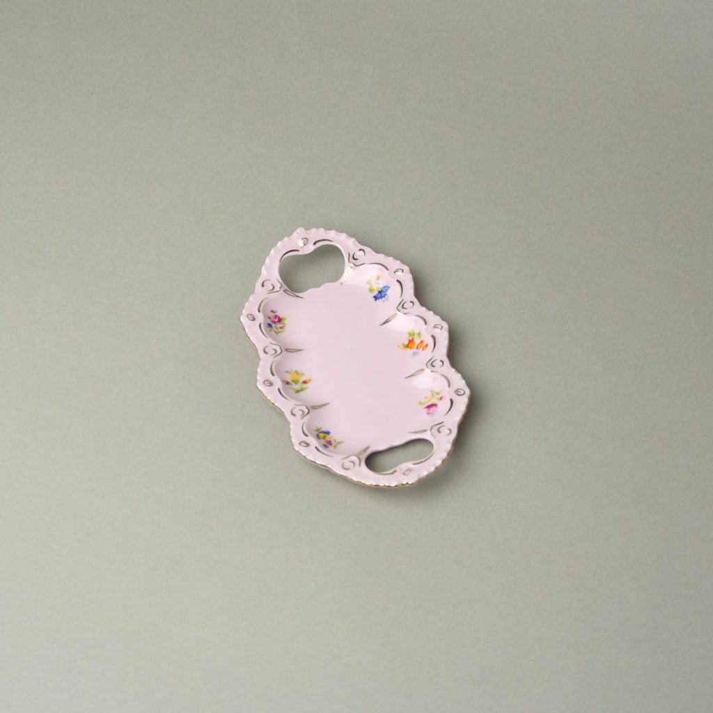 small tray with handles in the shape of Lenka, with the most popular decor number 247 "seven flowers" from the Chodov rose porcelain factory