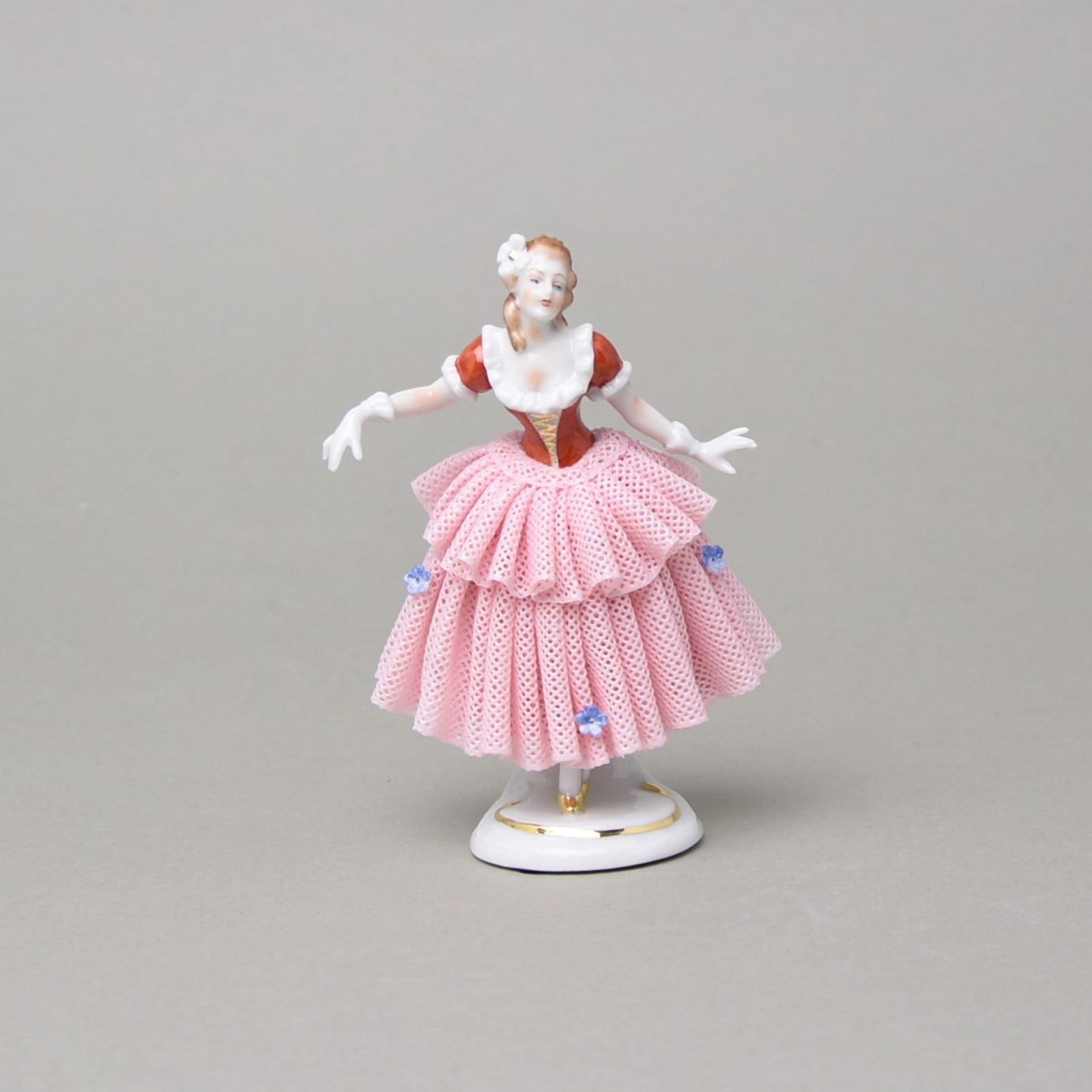 A popular line of affordable smaller porcelain figurines - dancers with lace skirts from the German porcelain factory Die Porzellanmanufakturen. The height of the figurines is approximately 12 cm. A great gift for lovers of this dying porcelain art. Just 40 years ago, German and Czech porcelain figurine factories provided a living for thousands of skilled painters. Now there are only a few last manufacturers in operation, who together employ only dozens of artists...