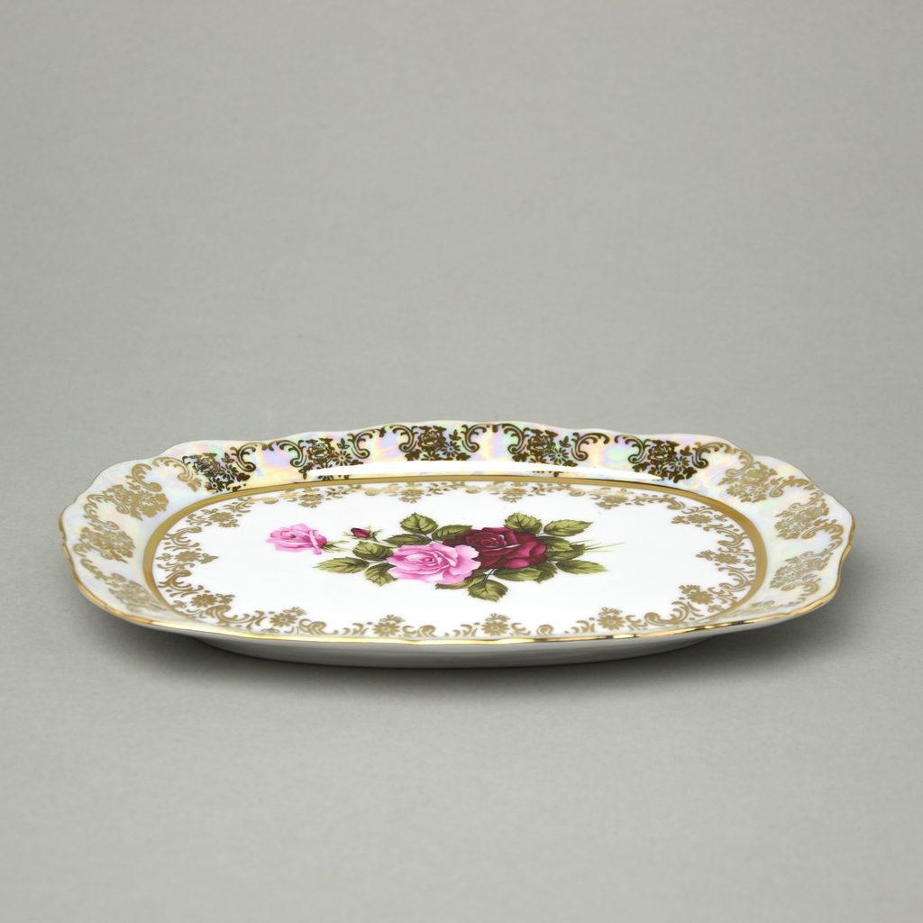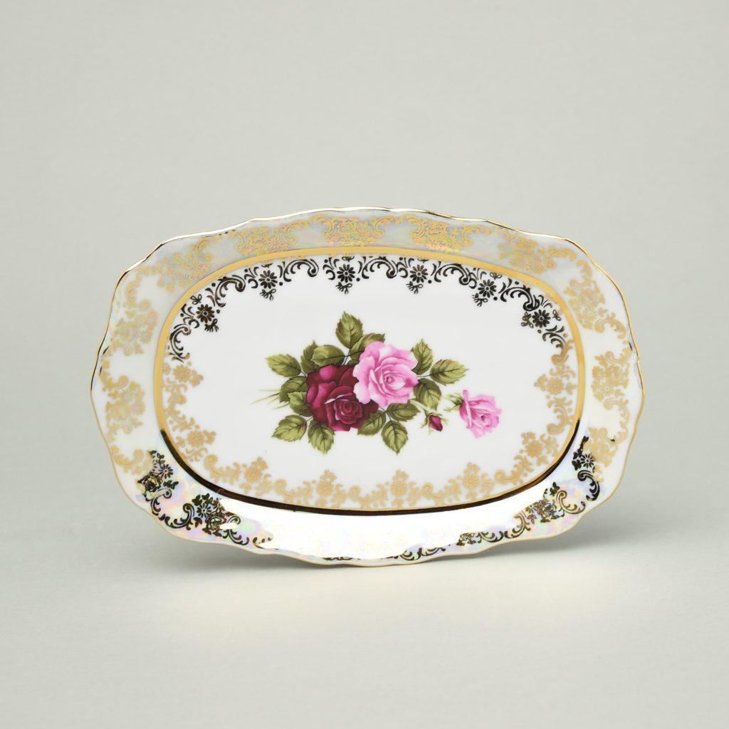 small cute tray Queens Crown (porcelain workshop near Karlovy Vary), tray with gold-pink-pearl decor and Cecily roses