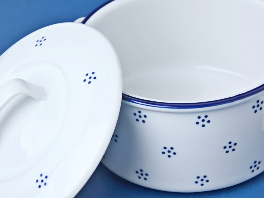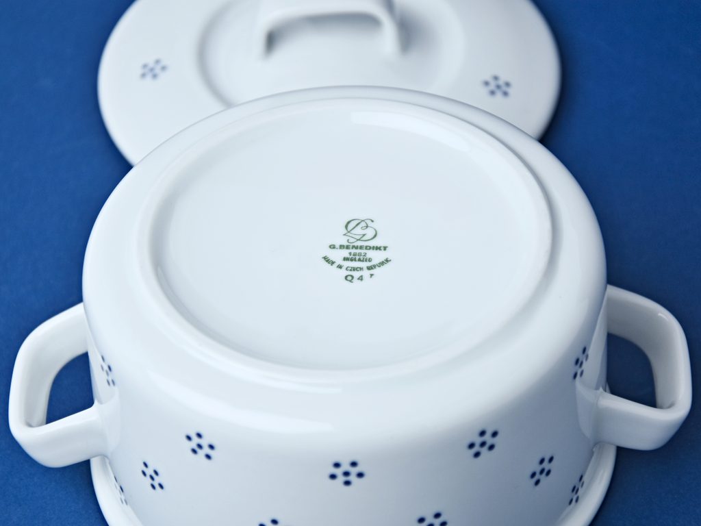 Beautiful retro cup / soup kettle with a lid and Valbella flowers in decor.. You can also buy a 19 cm dessert plate as part of the set, which fits perfectly under the kettle  (Benedikt = solid plate, Verona = lighter plate). You can also use it for storing food or leftover portions of food in the fridge and also for baking.