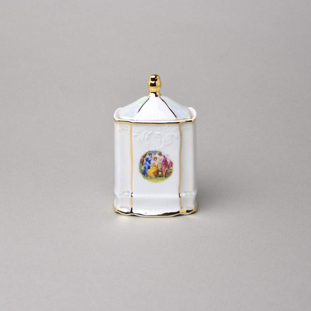 Spice jar, 1 pcs., Thun 1794 Carlsbad porcelain, BERNADOTTE, volume 150 ml. Rich The Three Graces gold-pearl decoration.