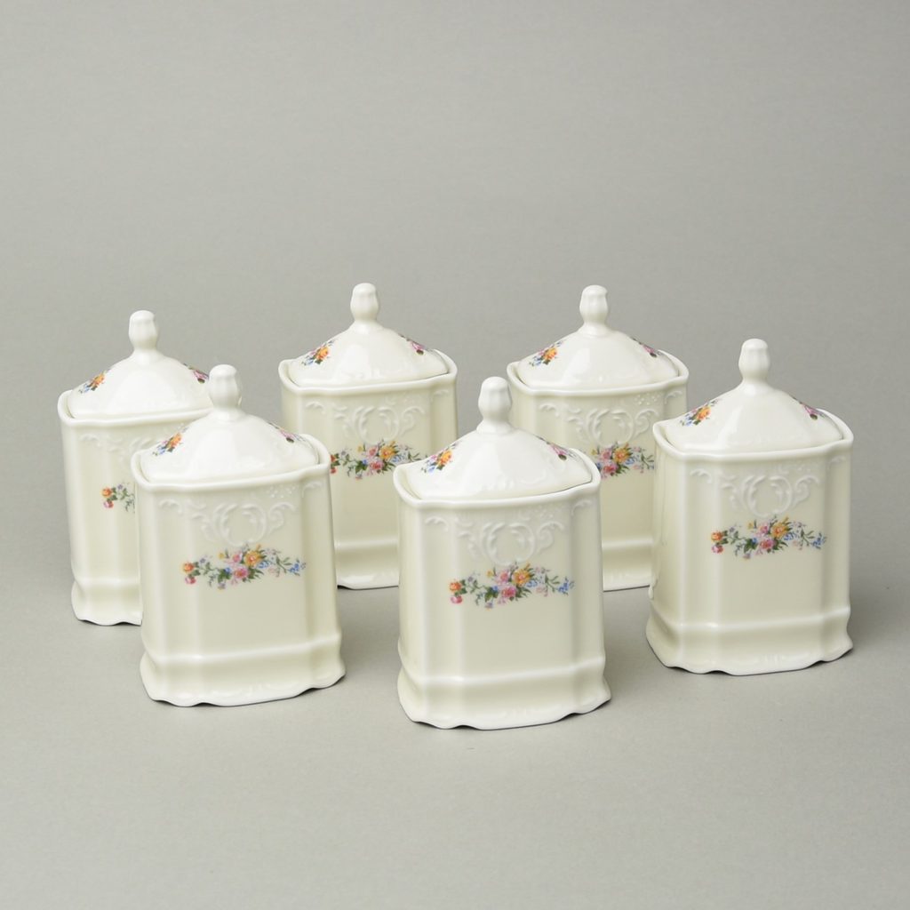 Spice jars 6 pcs. set, Thun 1794, karlovarský porcelán, BERNADOTTE ivory + flowers