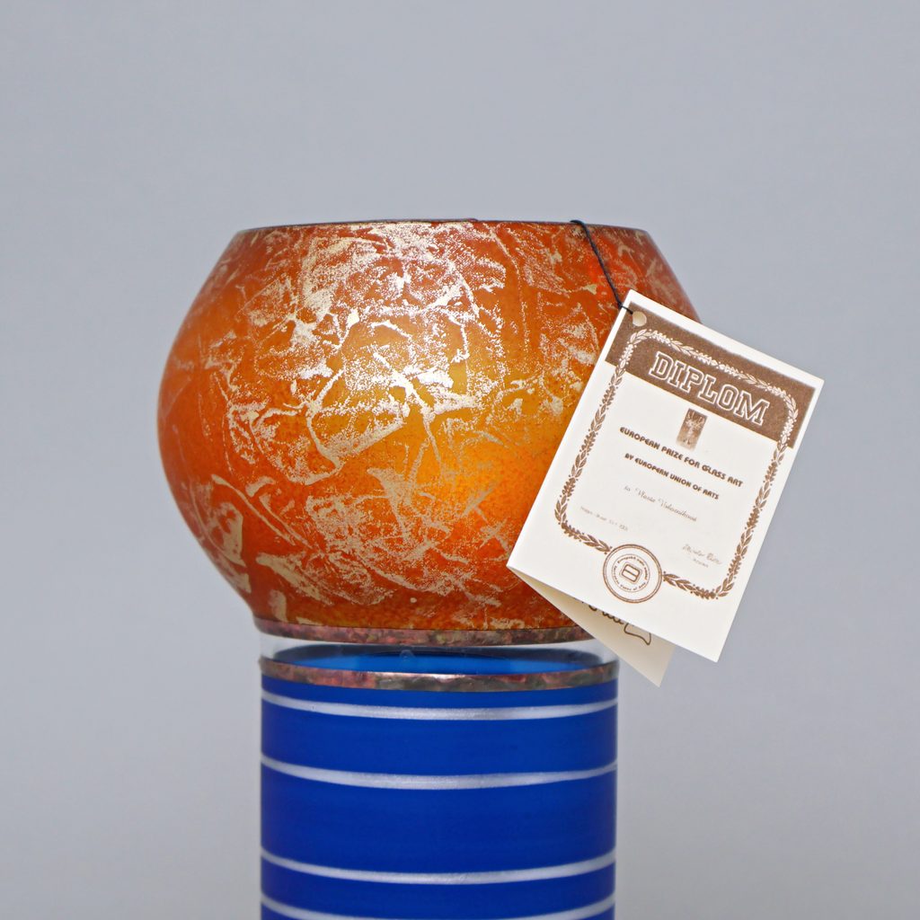 Hand decorated glass vase in the Miracle Glass Studio, which deals exclusively with hand-decorating glass products using a completely new technique of decorating glass products - based on the application of metals in combination with coloured surfaces. Autor of the original decorations is Vlasta Voborníková, the owner of the Studio.