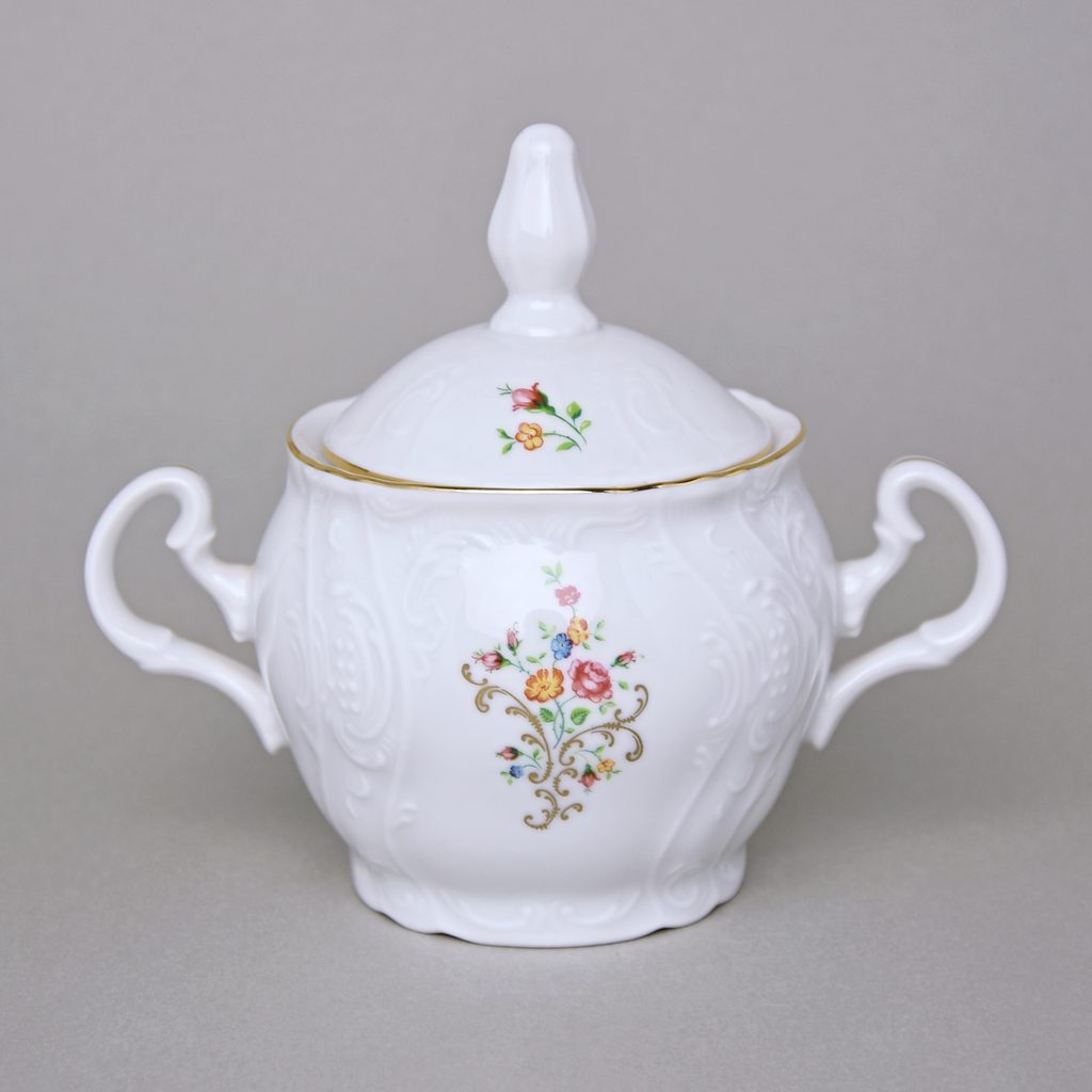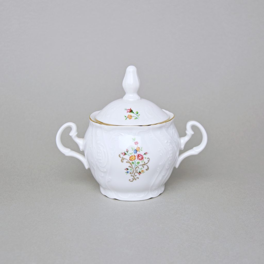 Sugar bowl 0,22 l, Thun 1794 Carlsbad porcelain, BERNADOTTE flowers with gold