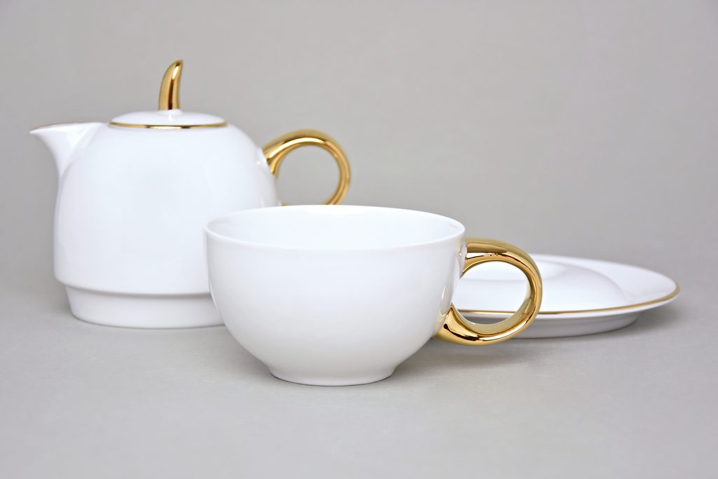 Tea for one set Maria-Theresa, Rudolf Kampf 1907 Tea for one set with gold decor. Tea pot 300 ml plus Cup 125 ml plus saucer. TZ collection was being created for many years, it was based on theimage of themylhical Maria-Theresa Reef in the South Pacific ocean. Up to the second half of the XX century this reef officially appeared on published maps and atlases but was unsuccessfully searched for later decades. While Jules Verne in his novels make famous the reef that did not exist, the sculptor ..