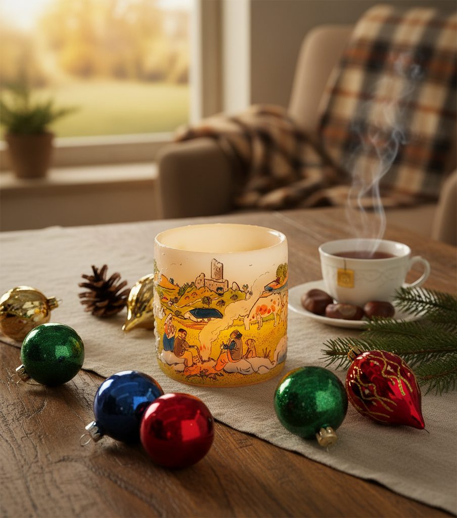 The lantern for a tea candle with 3D illustration Winter was created by connecting the Decor by Glassor brand with the family of painter Josef Lada. The lantern belongs to the licensed Lada's Land collection, which combines the most beloved illustrations with ornaments, decorations and home accessories.