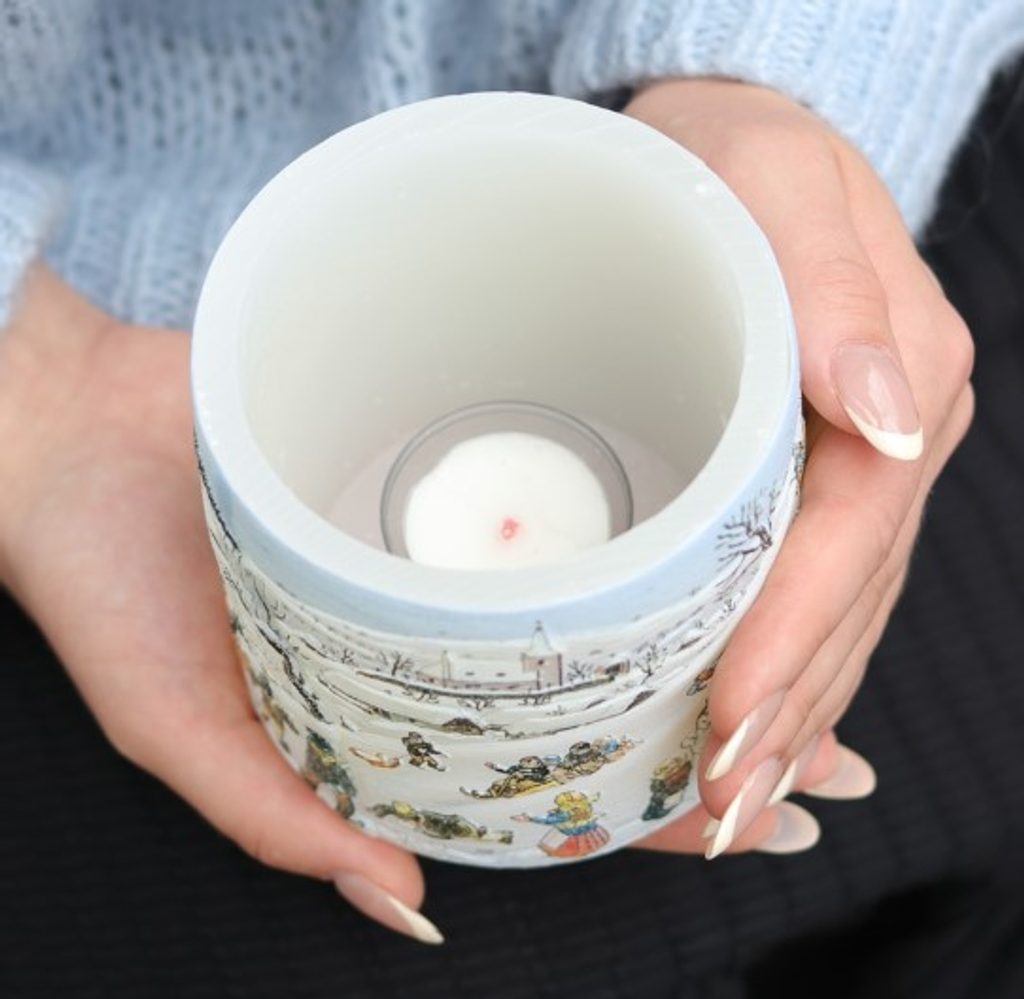 Tea light candle holder with 3D relief illustration "Winter" by the popular painter, Josef Lady.