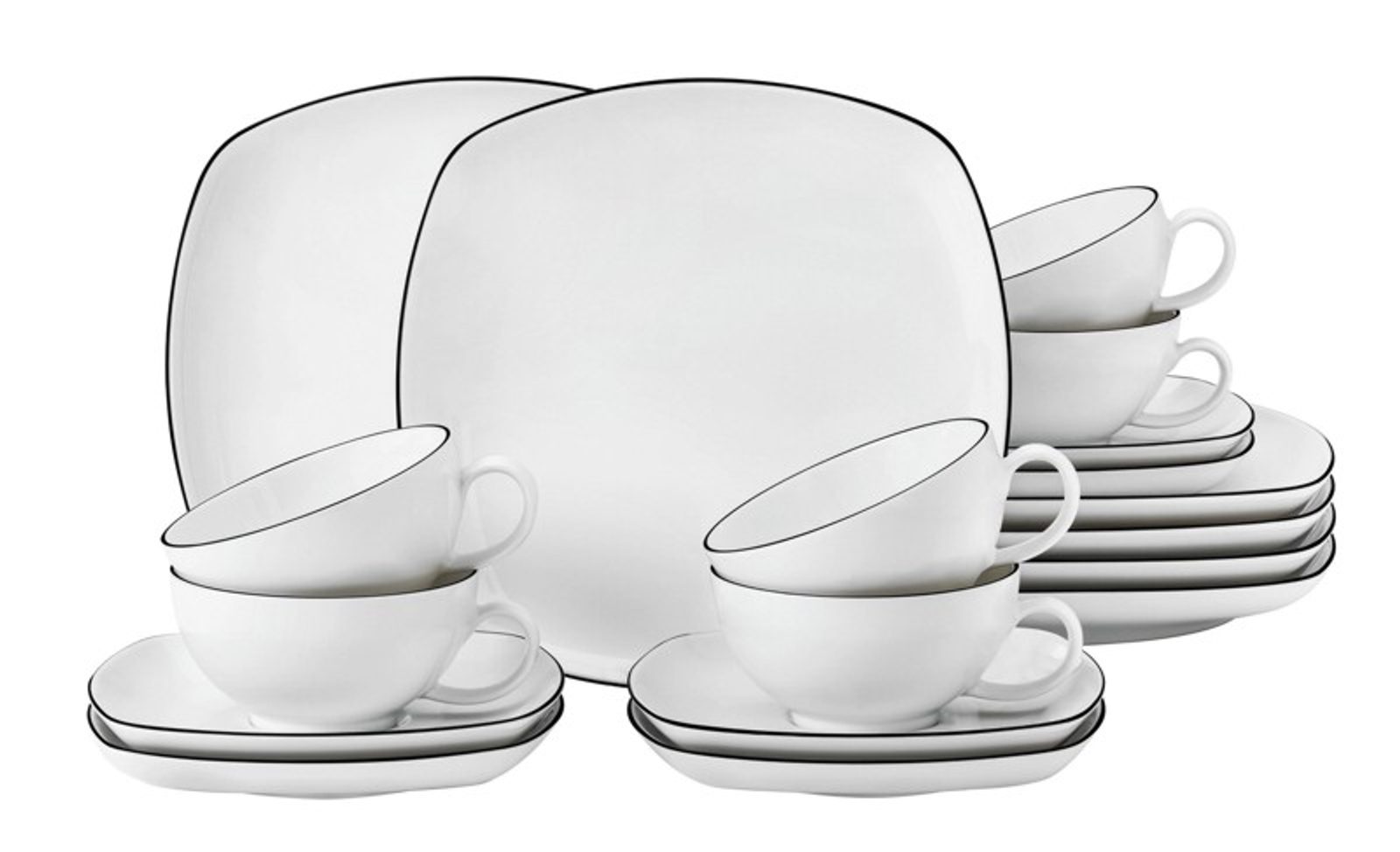 Tea set 18 pcs. square, large, Lido Black Line, Seltmann Porcelain