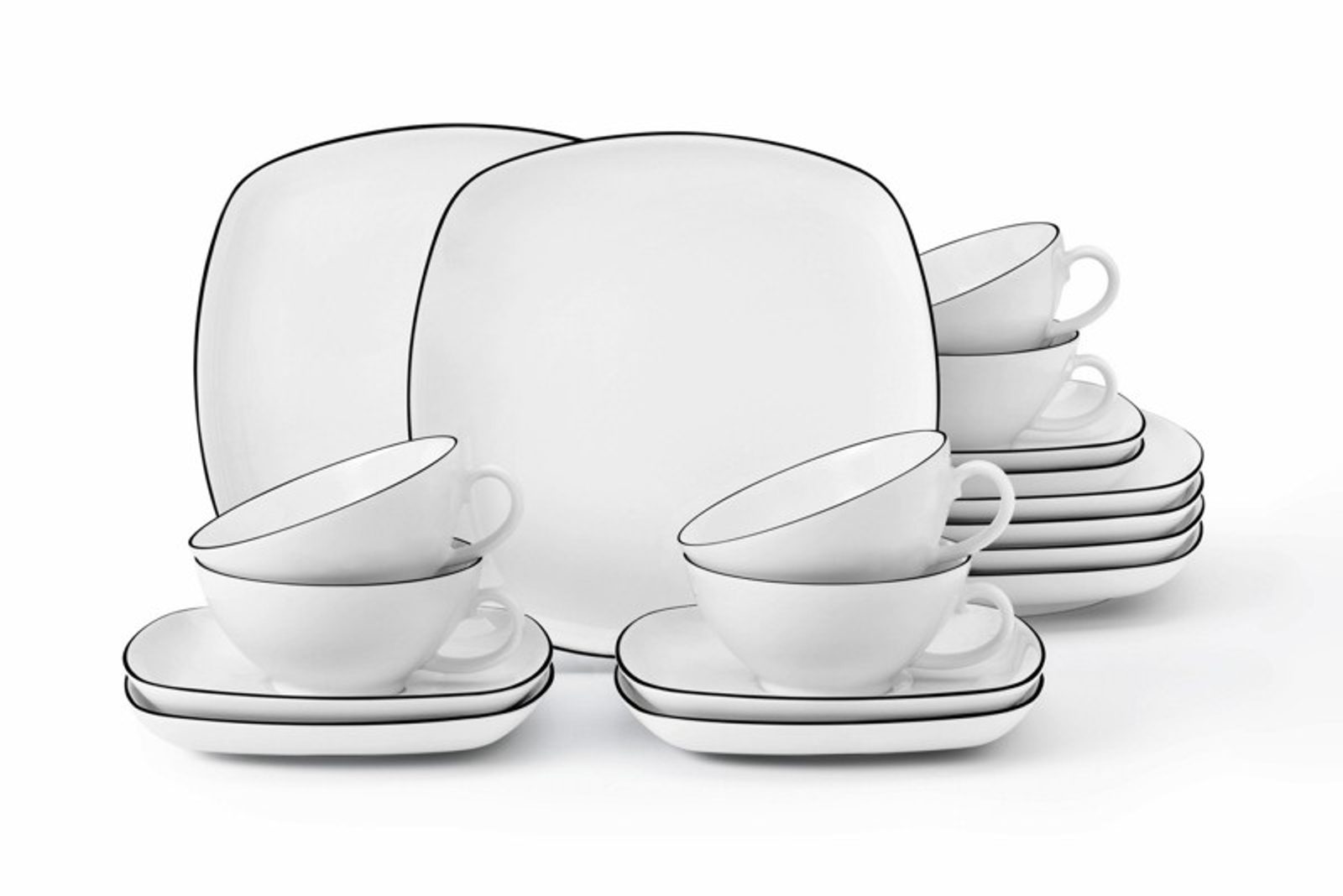 Tea set 18 pcs. square, small, Lido Black Line, Seltmann Porcelain