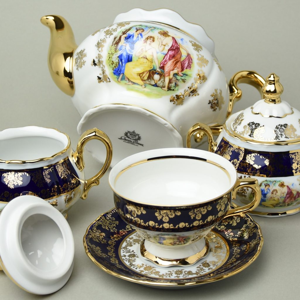 Tea sets Carlsbad and Queens Crown, The Three Graces decor