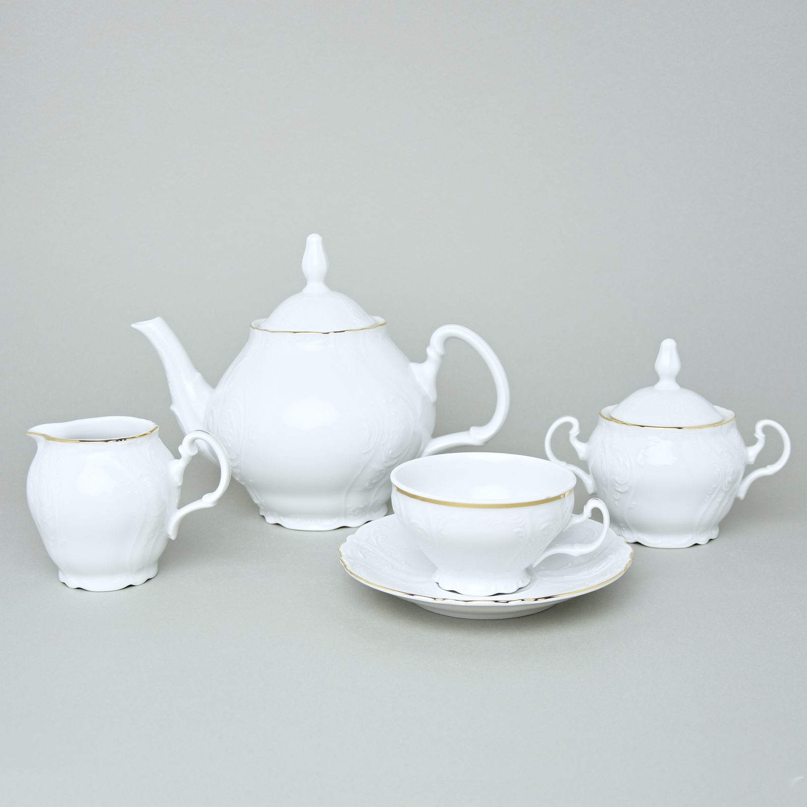 Tea set for 6 persons, Thun 1794 Carlsbad porcelain, BERNADOTTE gold line