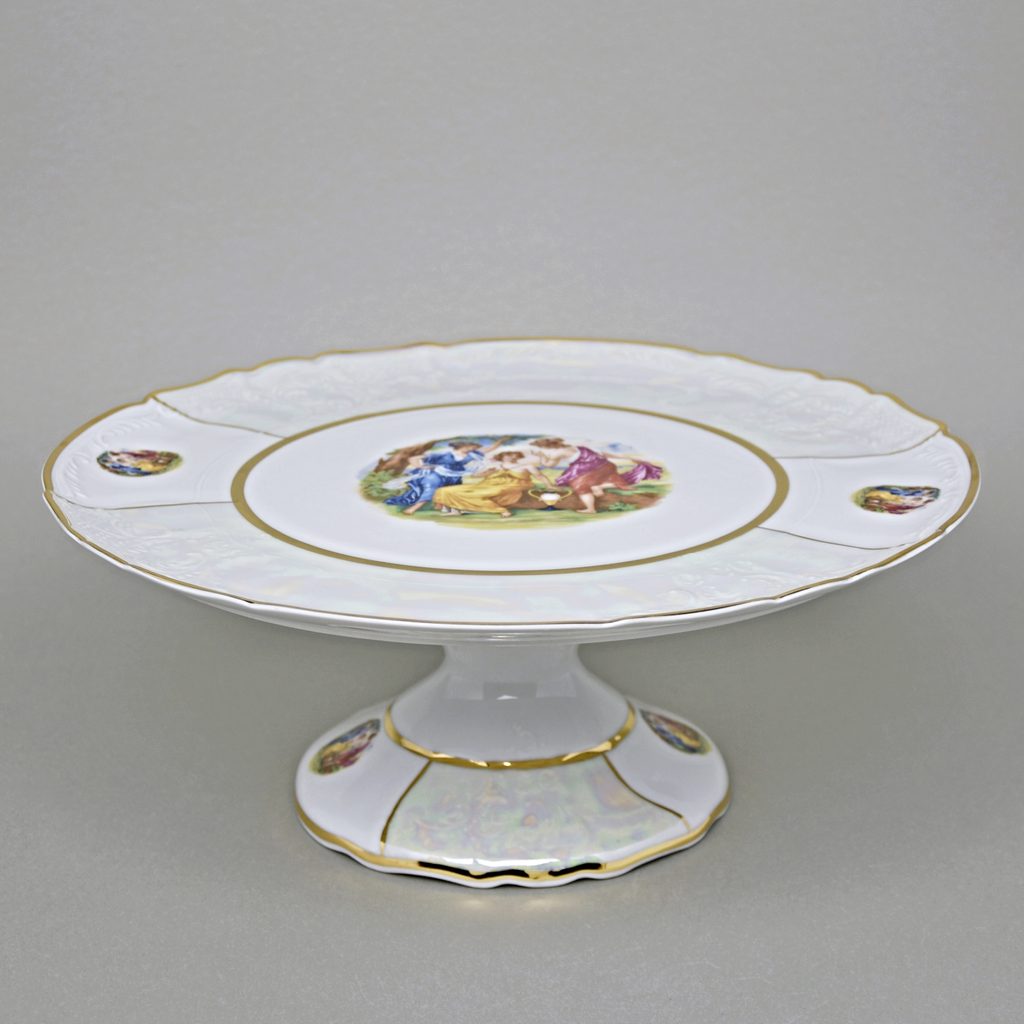 The Three Graces: Cake plate on stand 32 cm, Thun 1794 Carlsbad porcelain, BERNADOTTE