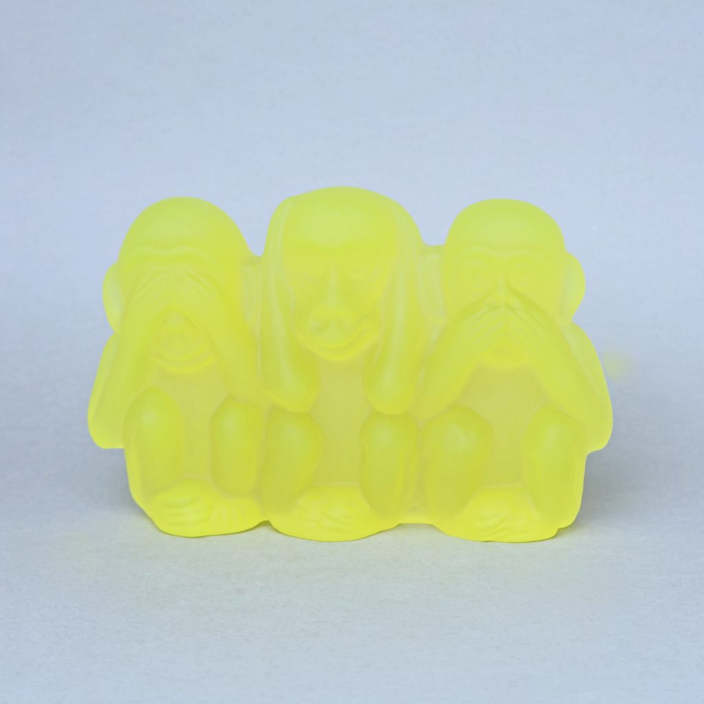 Decorative Glass Three Monkeys, Made of Genuine Uranium Glass, Handcrafted at the Janov Glassworks