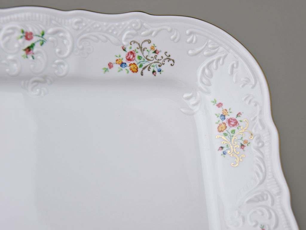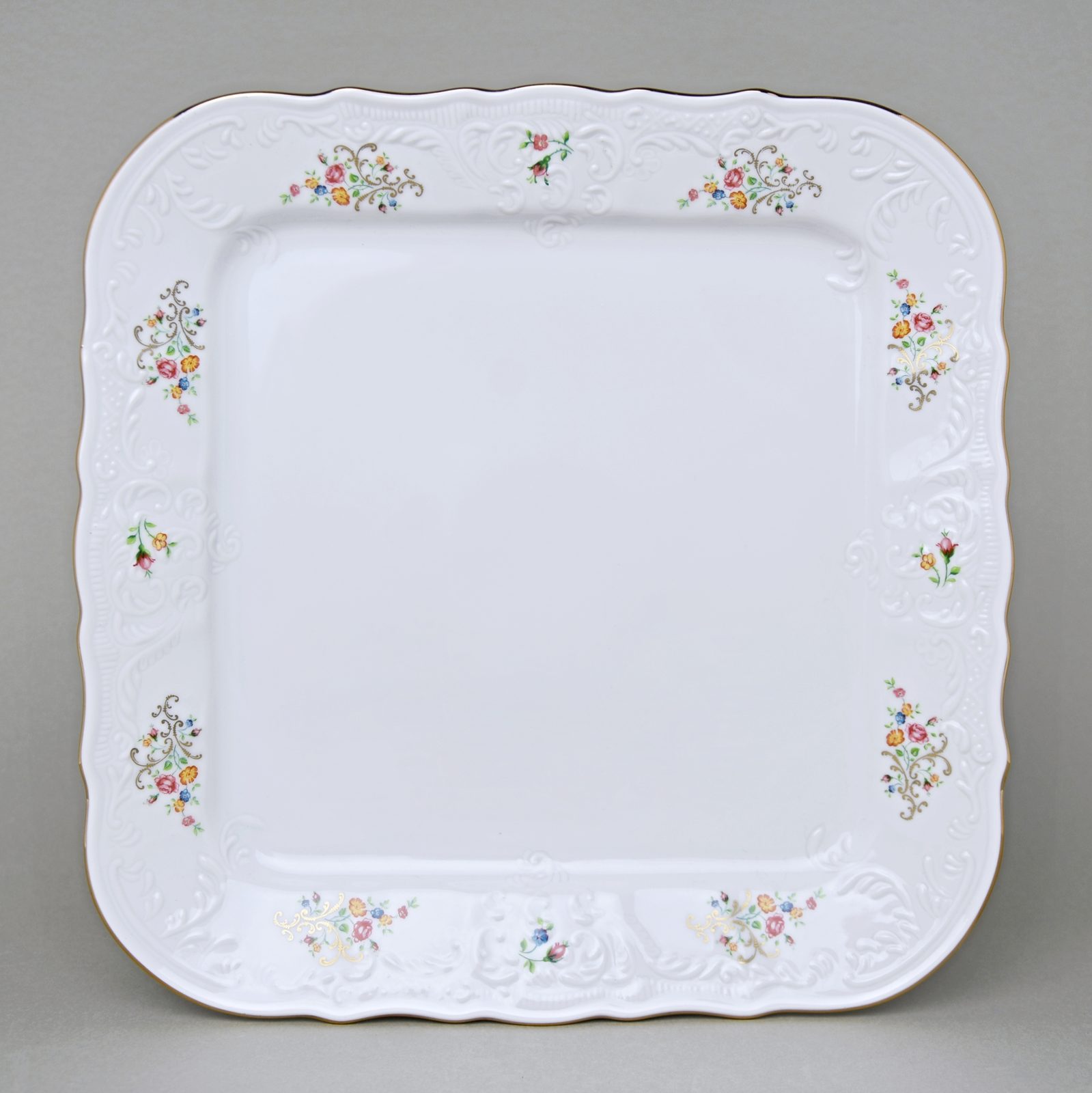 Tray square 26 cm, Thun 1794 Carlsbad porcelain, BERNADOTTE flowers with gold