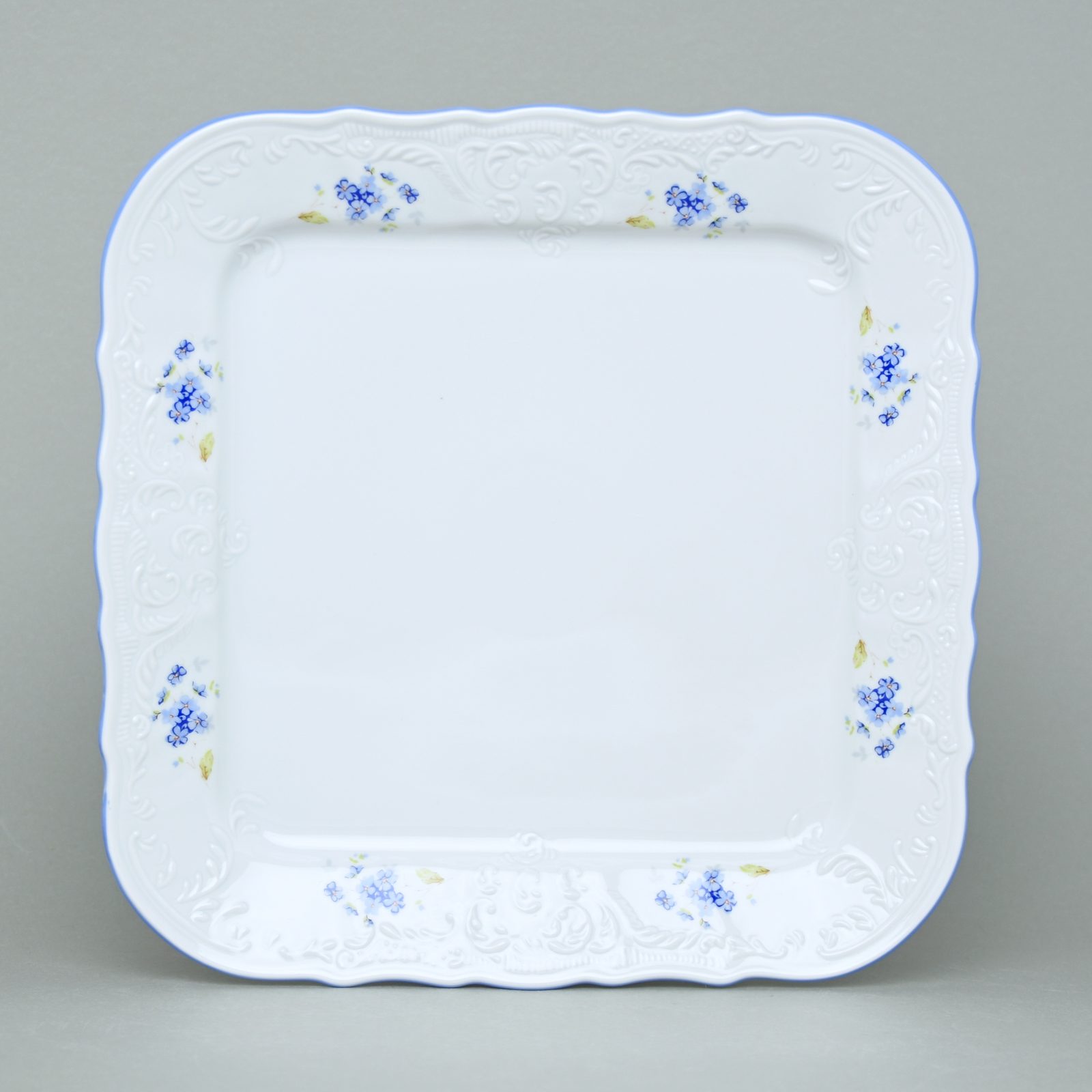 Tray square 26 cm, Thun 1794 Carlsbad porcelain, BERNADOTTE Forget-me-not-flower