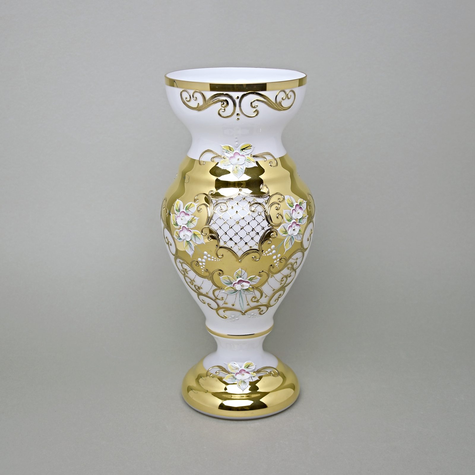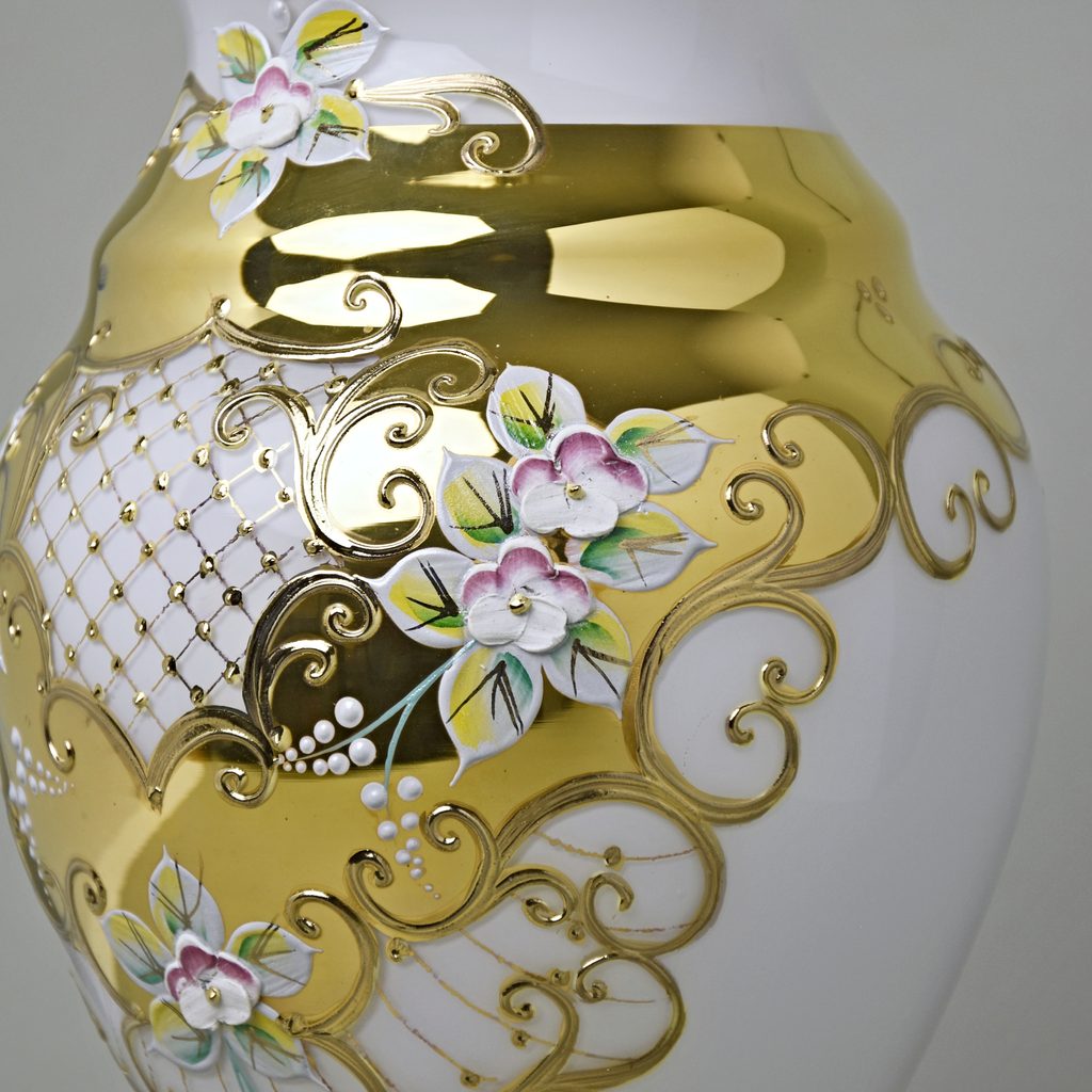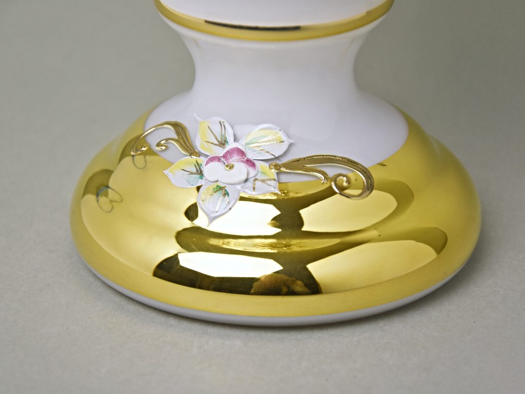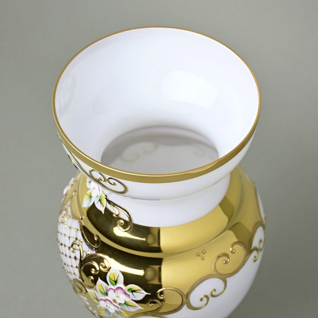 Vase 31 cm, WHITE glass, gold + enamel, Nový Bor glass