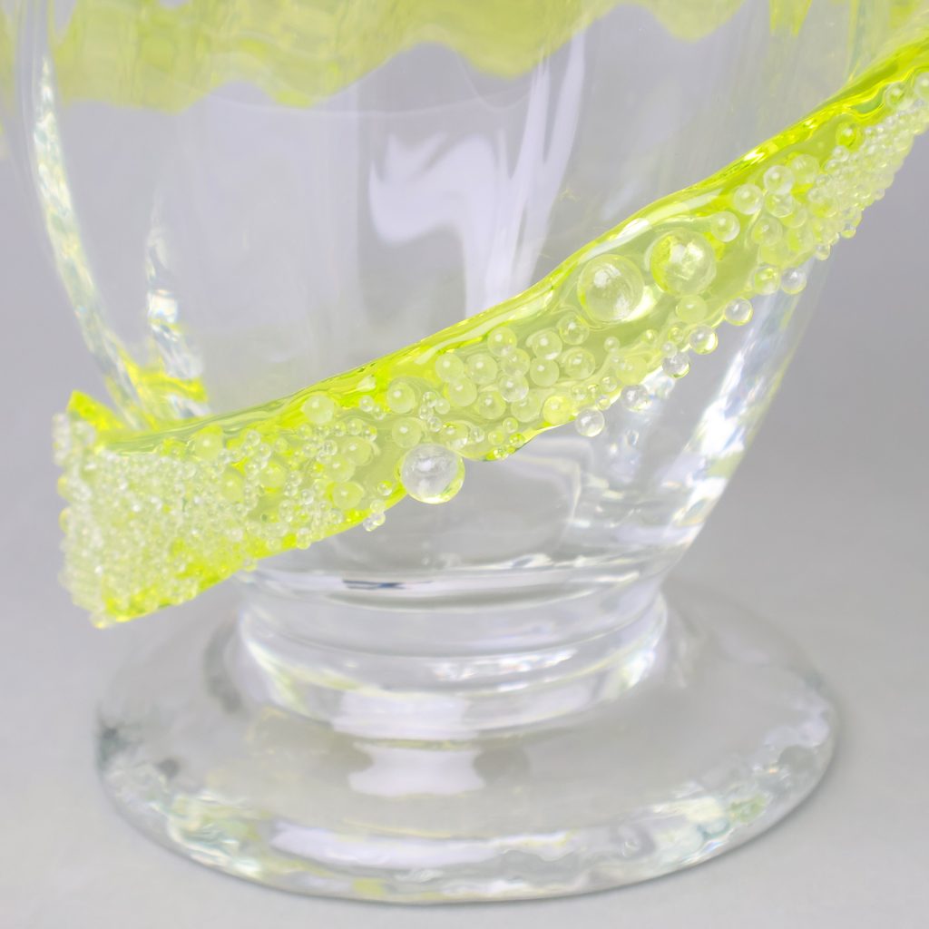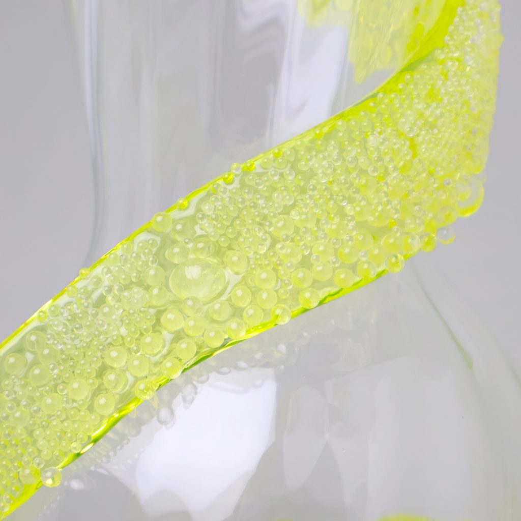 weight 2170 g, height 33 cm, upper width 10 cm, vase with a yellow band of uranium atoms that surrounds the body of the vase, original product from the Pačinek GLASS workshop