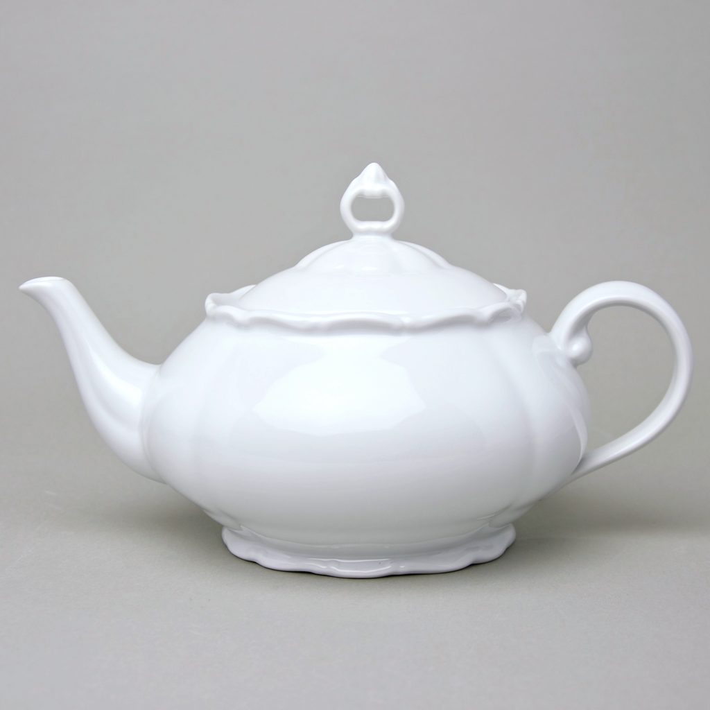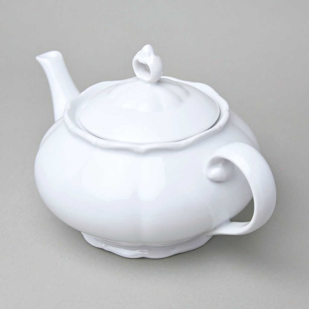 Popular porcelain Verona shape from the G. Benedikt porcelain factory, Karlovy Vary. Low wide teapot, volume 1300 ml.