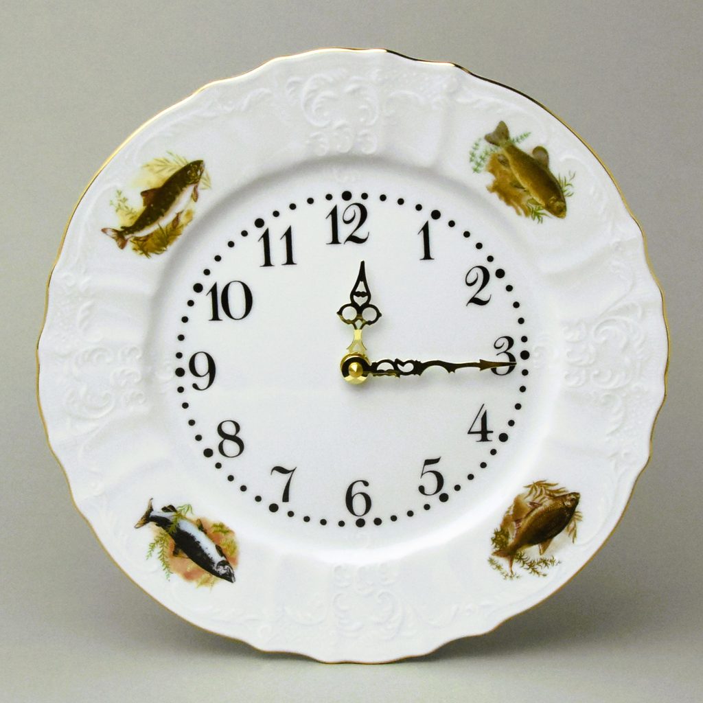 Wall clock 27 cm, Thun 1794 karlovarský porcelán, BERNADOTTE fishing