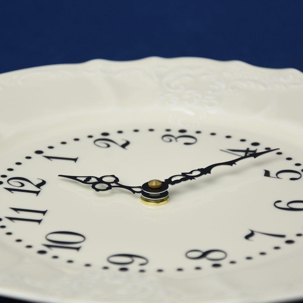 Beautiful wall clock - Bernadotte ivory china plate. Silent clock movement.