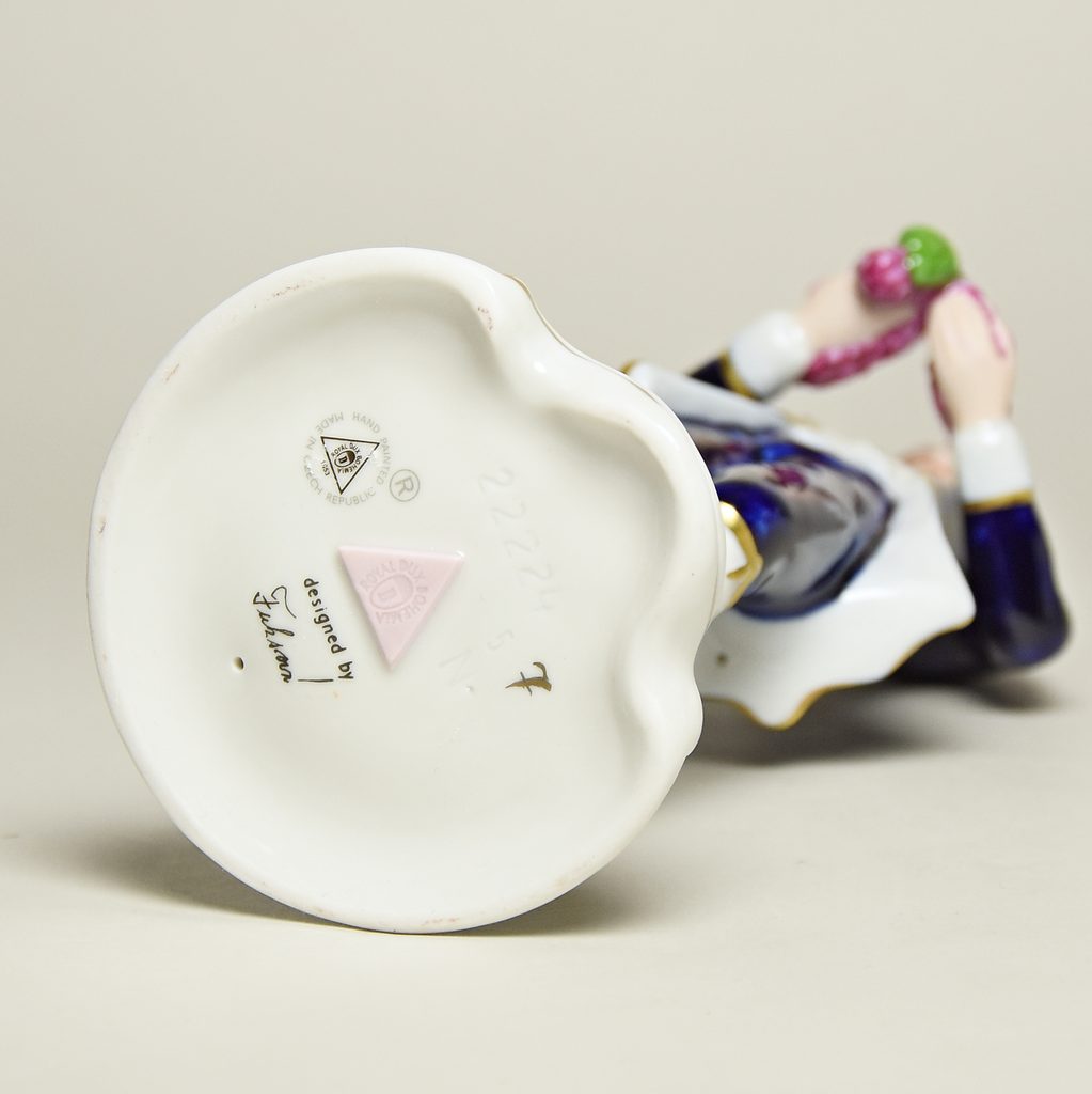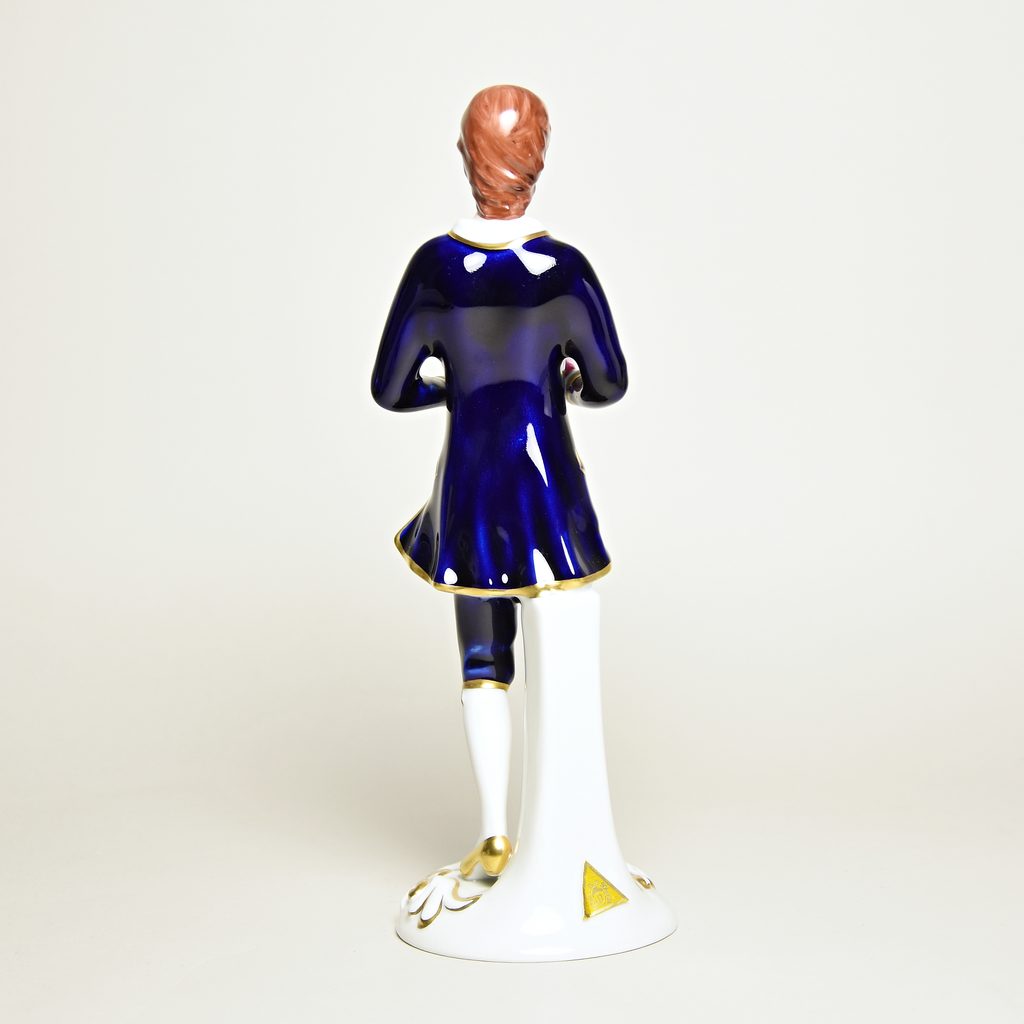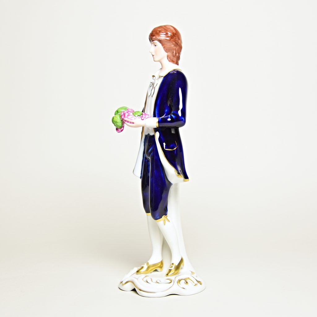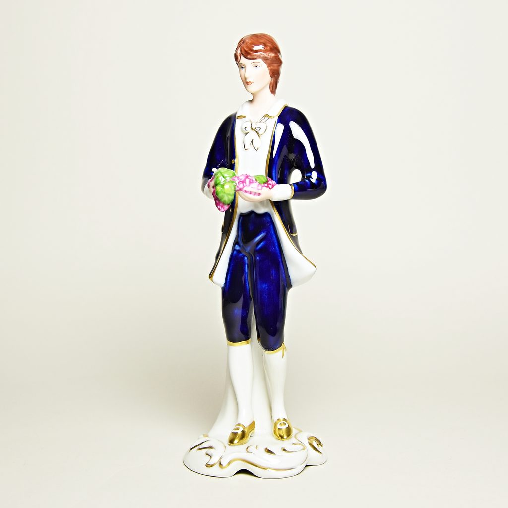 Elegant porcelain figure of "Wine grower" from the traditional Czech manufacture Duchcov (Royal Dux Bohemia). Rich golden details.