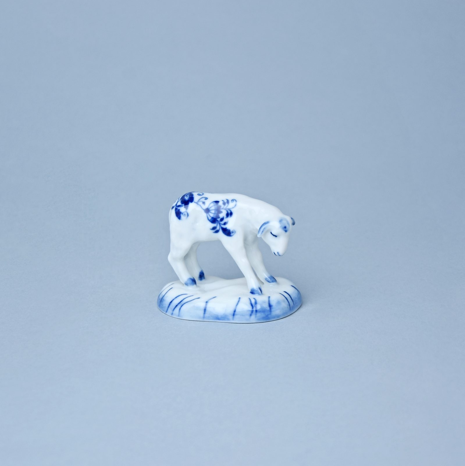 Porcelain figure of a lamb 6 cm. A part of a porcelain Christmas nativity scene. Original Blue Onion Pattern from Dubí, Český porcelán a.s.